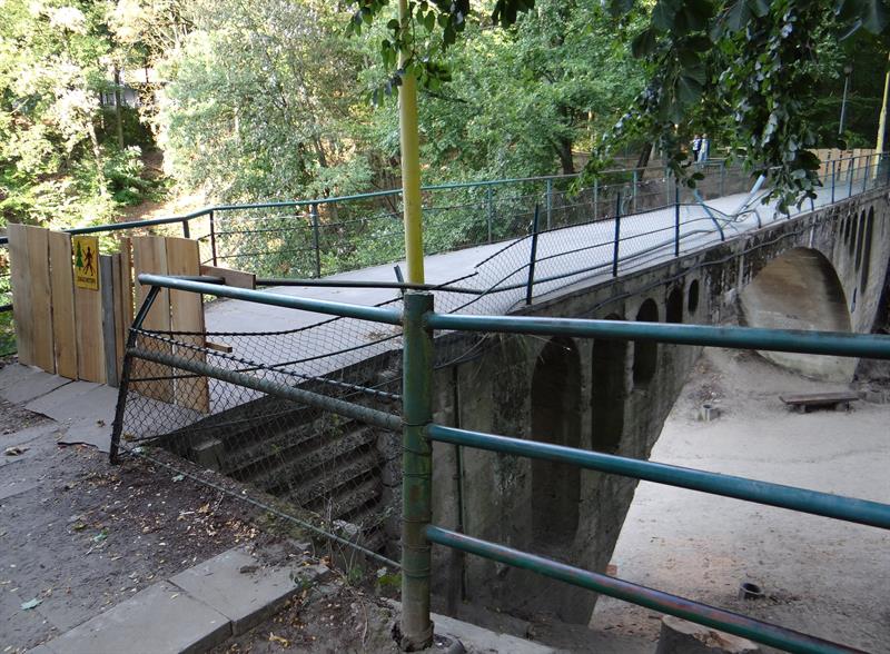Jest w równie fatalnym stanie co mostek nad Jez. Rusałka, czyli o krok od katastrofy budowlanej. Widać spękania, nacieki, ubytki w nawierzchni i korozję betonu, czyli obraz lat zaniedbań i braku właściwej konserwacji. Niestety, urzędnicy miasta dopiero się przymierzają (ogłoszony przetarg dla wyłonienia wykonawcy) do remontu zabytkowej budowli inżynieryjnej w parku Kasprowicza. Kiedy więc przyjdzie czas na ratowanie mostku nad Szmaragdowym?