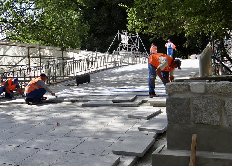 Wcześniej – pod nadzorem Zachodniopomorskiego Wojewódzkiego Konserwatora Zabytków – na budowie wykonano liczne próby doboru właściwego koloru farb, odzwierciedlającego barwę naturalnego betonu historycznego, z którego została wykonana cała konstrukcja wraz z detalami architektonicznymi. Do zamontowania pozostały też jeszcze ostatnie z odrestaurowanych przęseł kutych balustrad. A odnowione gazony na przyczółkach od strony parku i ul. Juliusza Słowackiego czekają na nasadzenia roślin.