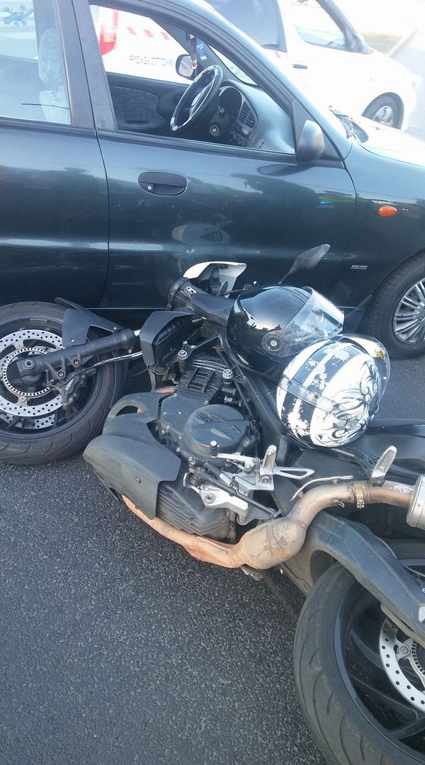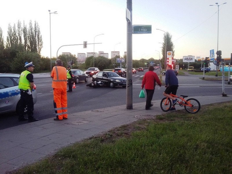 U zbiegu ul. Sczanieckiej i 1 Maja w Szczecinie doszło do wypadku. Zderzył się tam samochód osobowy z motocyklem.