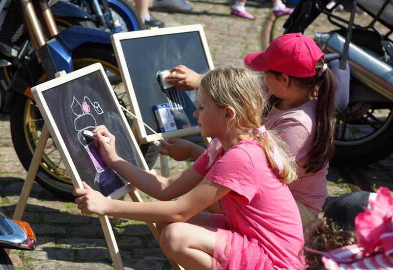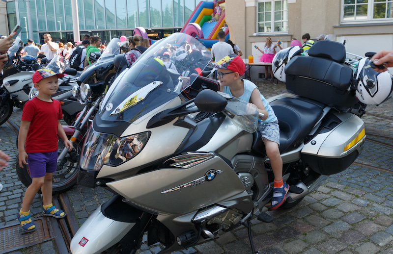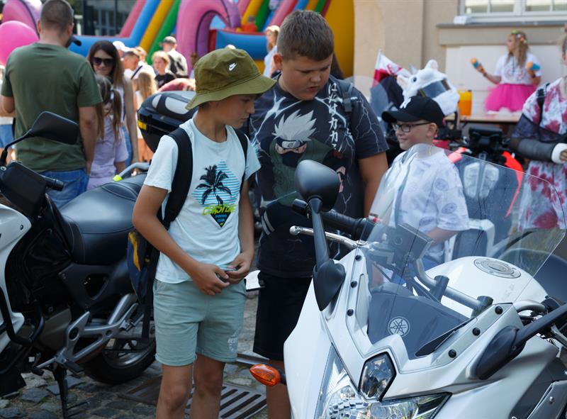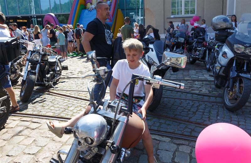 Organizatorzy zadbali, by uśmiechy nie schodziły z twarzy dzieci. Było mnóstwo dobrej zabawy, konkursy z nagrodami, pokaz iluzjonisty, nauka zumby i występy artystyczne. Wszystko za darmowo. Kto miał ochotę, mógł za złotówkę zwiedzić muzeum. Motocyklowy Dzień Dziecka trwa do godz. 14. (K)