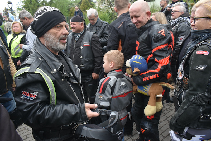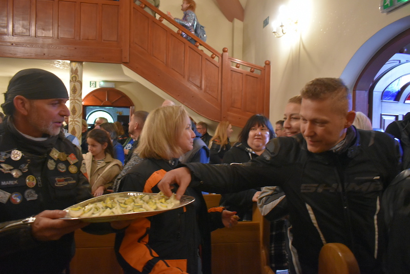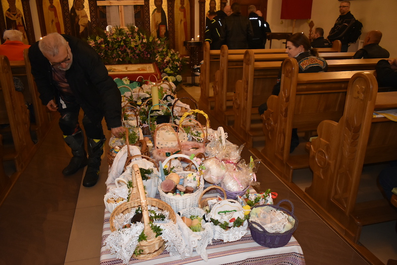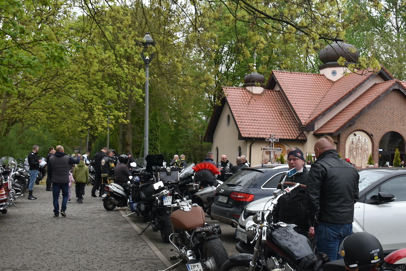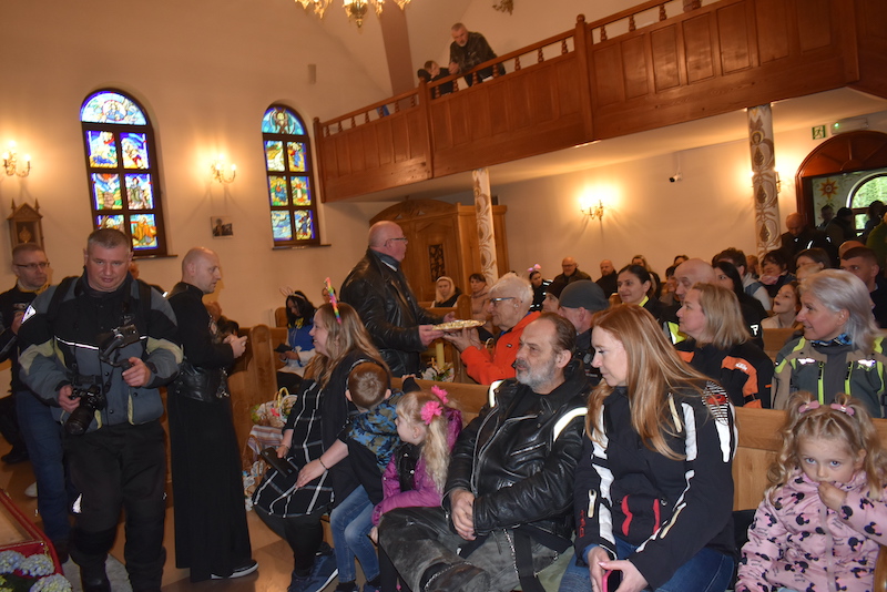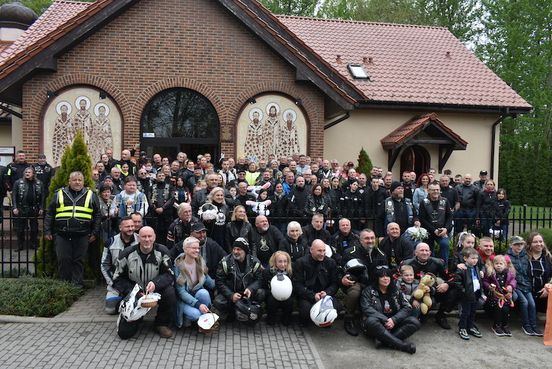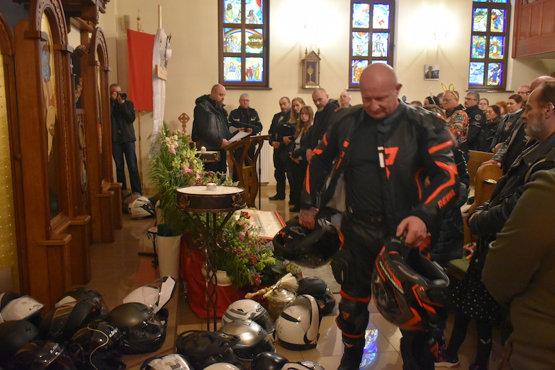 Podczas uroczystości ks. Rusłan serwował dowcipy o motocyklistach, wprowadzając radosną atmosferę. Potem pobłogosławił nie tylko uczestników, ale również ich motocykle, kaski i przygotowane pokarmy. W modlitwie szczególne miejsce zajęła intencja o bezpieczną jazdę, wzajemny szacunek na drodze i szczęśliwe powroty z każdej wyprawy. Potem odbyło się tradycyjne poświęcenie pojazdów. Motocykliści ustawili się w długim rzędzie przed kościołem, a ks. Rusłan i Bartosz przechodzili wzdłuż nich, kropiąc każdy motocykl wodą święconą i wypowiadając błogosławieństwo. Nie zapomniano też o kaskach, symbolach odpowiedzialności i troski o życie, które również zostały poświęcone. Po ceremonii motocyklowa brać stanęła do wspólnego zdjęcia.
