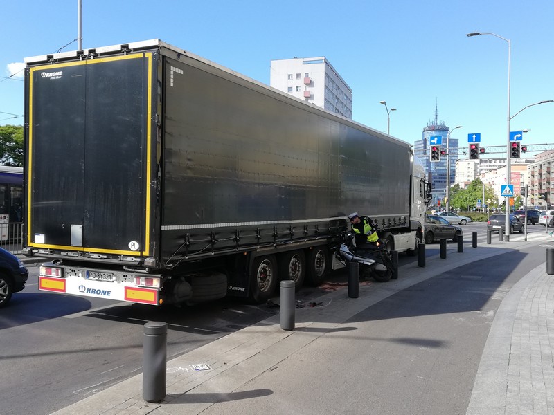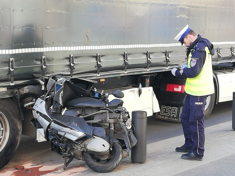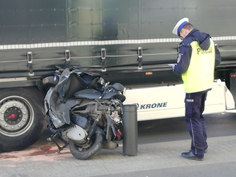 Do wypadku doszło przy pl. Żołnierza Polskiego w Szczecinie. Motocyklista wpadł tam pod koła tira. Mężczyzna jest poturbowany, ale jego życiu nie zagraża niebezpieczeństwo. Obecnie policja bada przyczyny wypadku.