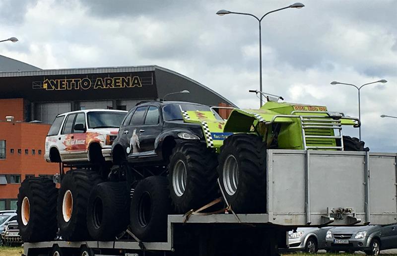 Takie wehikuły na platformie pojawiły się przed halą Netto Arena przy ul. Władysława Szafera w Szczecinie. To zwiastun atrakcji dla miłośników motoryzacji i ekstremalnej jazdy, czyli motorowego show zapowiadanego na kolejne dwa letnie weekendy, tj. 30 czerwca-1 lipca oraz 7 i 8 lipca. Widowisko pn. American Monster Truck Motor Show z udziałem grup kaskaderów anonsowane jest jako pokaz łączący elementy pirotechniczne z efektami świetlnymi w muzycznej oprawie. Organizatorzy zapewniają pisk opon, ryk silników, zapach unoszących się w powietrzu oparów benzyny i swąd palonej gumy. W programie m.in. przejazd przez ścianę ognia z człowiekiem na masce pojazdu, jazda w kontrolowanym poślizgu, na bocznych kołach samochodów osobowych i quadów, symulowane wypadki. ©℗