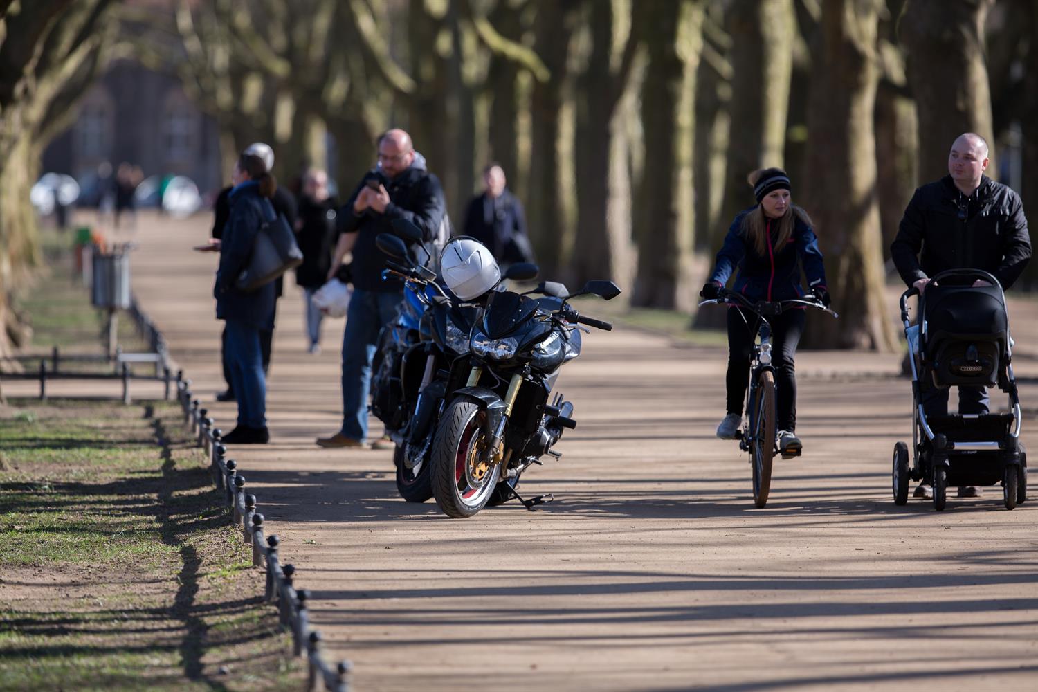 Przybyli tu nie tylko amatorzy przechadzek, rowerów, ludzie podziwiający krokusy. Pojawili się nawet motocykliści. Pytanie: czy również ich pojazdy powinny się znaleźć na ścieżkach przeznaczonych dla pieszych i rowerzystów? ©℗