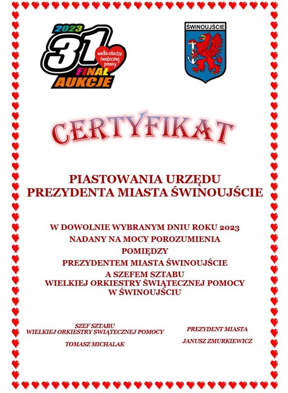 Żeby zostać prezydentem Świnoujścia, wystarczy wziąć udział w aukcji Wielkiej Orkiestry Świątecznej Pomocy organizowanej przez świnoujski sztab.