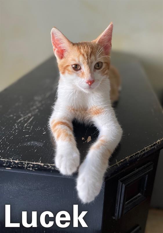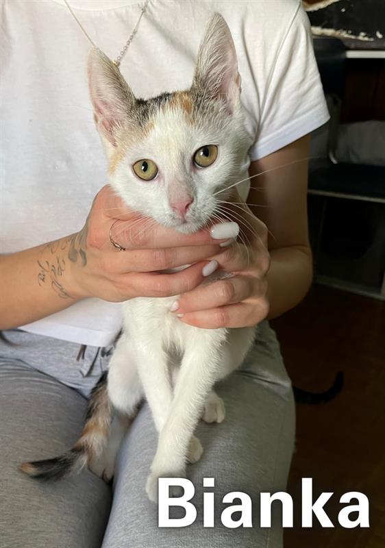 Lucek z Bianką mieli po 6 tygodni, gdy odrzuciła ich matka – domowa kotka ze wsi pod Lipianami. Maluchy były nie tylko odwodnione, wygłodzone, ale też miały liczne gnijące nadżerki, w tym dziąseł. Cierpiały potwornie, zakażone caliciwirusem. Walka o życie kociąt trwała tygodniami. Choroba nawracała. W końcu maluchy są całe, zdrowe, niezwykle proludzkie i – jak inne bezdomniaki z tzw. kociej górki w Zwierzęcym Telefonie Zaufania – wypatrują dobrych ludzi.