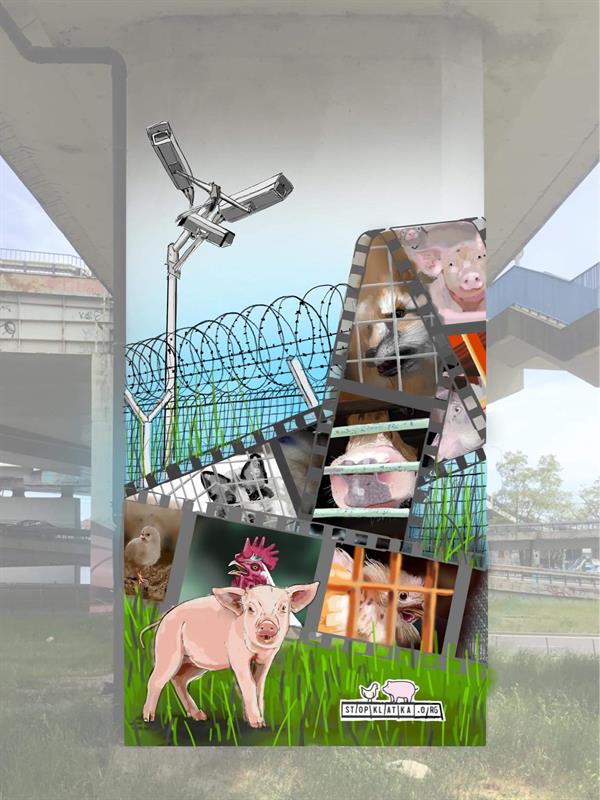 – To graffiti bazuje m. in. na zdjęciach zwierząt, które uwieczniliśmy podczas prowadzenia śledztw na fermach oraz dokumentując ich transporty do rzeźni. Chcemy w ten sposób zwrócić uwagę na los i prawa „braci mniejszych”. Trafić z przekazem do przypadkowych przechodniów oraz zareklamować stronę internetową kampanii Stopklatka – mówi Łukasz Musiał, aktywista Fundacji Viva!. – Na niej można obejrzeć filmy ukazujące rzeczywistość zwierząt w Polsce. Zamieszczamy na niej także wszelkie informacje dotyczące działań naszej organizacji. Prezentujemy również szkody, jakie dla środowiska i ludzi wywołują przemysłowe fermy oraz zachęcamy do spróbowania diety wegańskiej