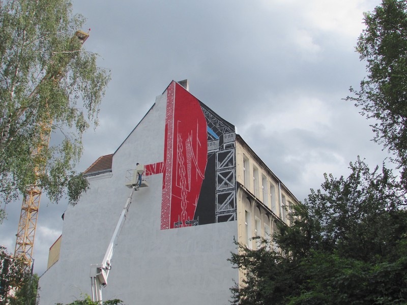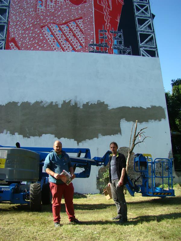 Przy ul. Chmielewskiego 8 w szczecińskiej dzielnicy Pomorzany powstaje nowy mural. Niebawem, jak mówią jego autorzy Mariusz Waras i Rafał Chomik, zostanie ukończony.
