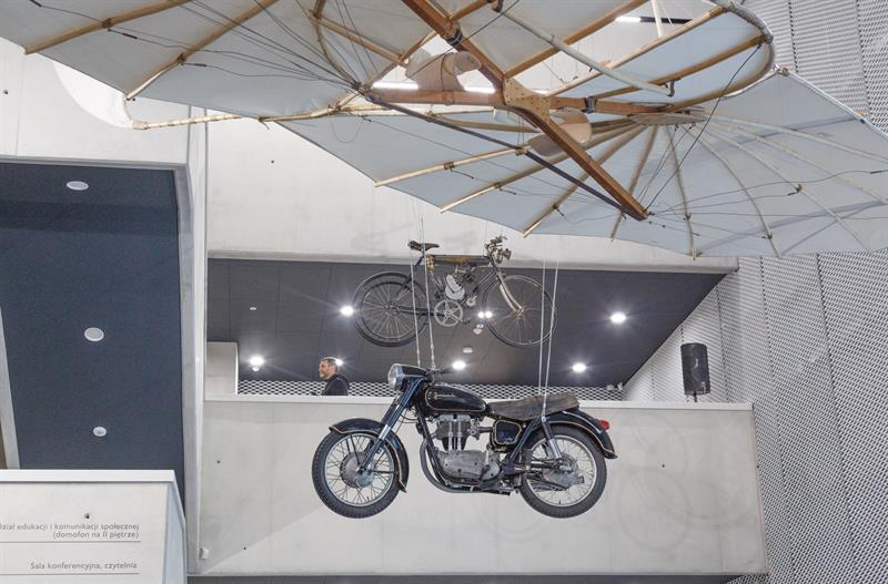 Już przy wejściu, w przestronnym holu, warto podnieść głowę do góry. Pod sufitem podwieszono trzy zabytkowe jednoślady i samolot lotnia Ottona Lilienthala, który latał kilkanaście lat przed braćmi Wright. W kolejnych salach jest jeszcze ciekawiej. Powstało tam bowiem interaktywne motoeksperymentarium. Budowa nowego skrzydła i remont zabytkowej kamienicy na terenie dawnej zajezdni tramwajowej były możliwe w ramach projektu interregionalnego INT 152 „Historia techniki na Pomorzu - transgraniczna współpraca muzeów w Anklam i Szczecinie”.