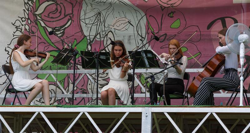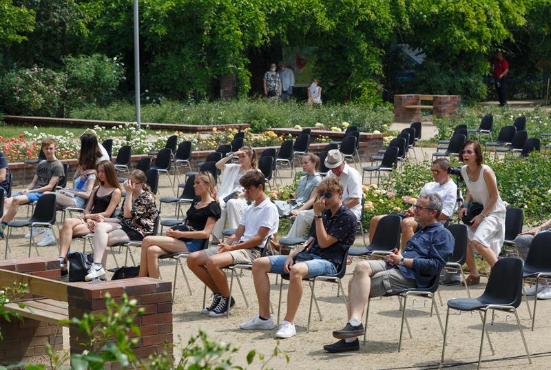 Upał nie zniechęcił mieszkańców, którzy w niedzielę licznie przybyli do Różanego Ogrodu Sztuki. W samo południe odbył się tam koncert uczniów Zespołu Państwowych Szkół Muzycznych im. Feliksa Nowowiejskiego w Szczecinie.