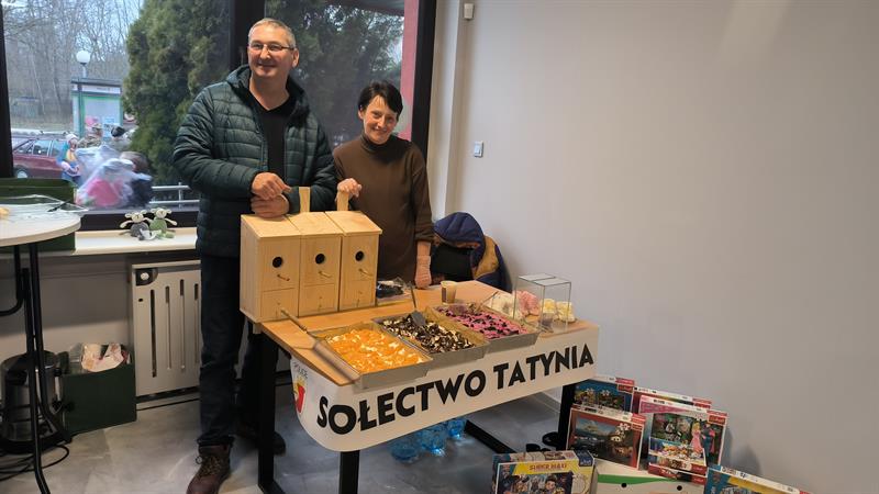- Ale mamy też mieszkańca (to Maciej Krupka - red.), który przekazuje na cel charytatywny swoje prace, np. budki lęgowe dla ptaków, albo karmniki - mówi Maria Tabisz, sołtys Tatyni. - Jest stolarzem i robi je w swoim warsztacie. Takie budki mamy właśnie na swoim stoisku, trafią one na licytację.