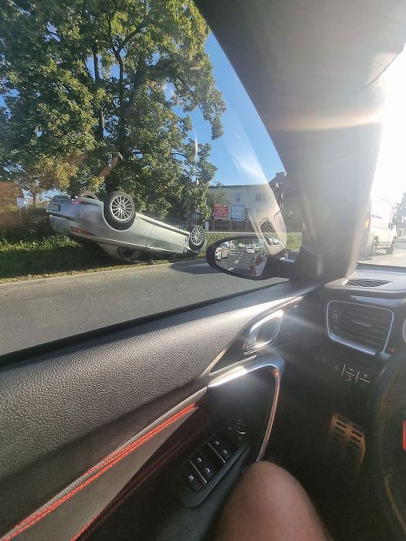 W Szczecinie na ul. Batalionów Chłopskich dachowała osobówka. Do zdarzenia doszło w czwartek 12 sierpnia przed godziną ósmą.