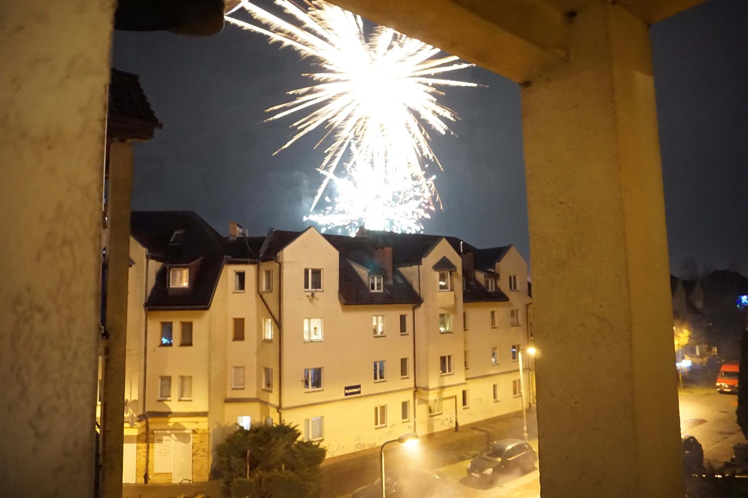 Spokojnie przebiegła noc z 2017 na 2018 rok w podszczecińskim Bezrzeczu. Tak jak w Szczecinie i województwie tradycyjnie odpalano sztuczne ognie. Jednak nie były one zbyt uciążliwe dla osób pragnących spokoju. Na przykład w rejonie ulic Koralowa-Brylantowa (na zdjęciu) huk rac i petard nasilił się przed północą i trwał kilkanaście minut po godzinie 24. Potem był spokój i nieco zmęczeni noworocznym szaleństwem mieszkańcy mogli udać się na spoczynek.