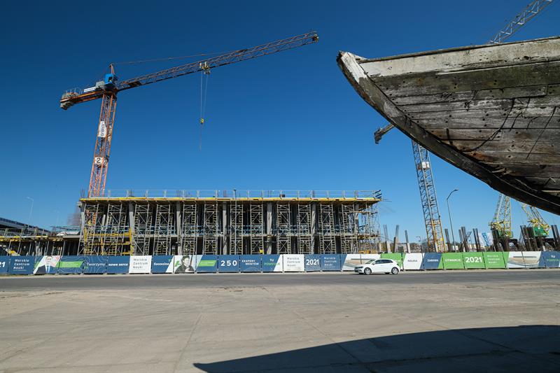Pomimo szalejącej na świecie pandemii wywołanej przez wirus SARS-CoV-2 prace na budowie Morskiego Centrum Nauki wciąż trwają. Do 31 maja część nabrzeża na Łasztowni będzie zajęta, przez co wystąpią trudności w swobodnym poruszaniu się na odcinku od wiaduktu na Trasie Zamkowej do dźwigozaurów.