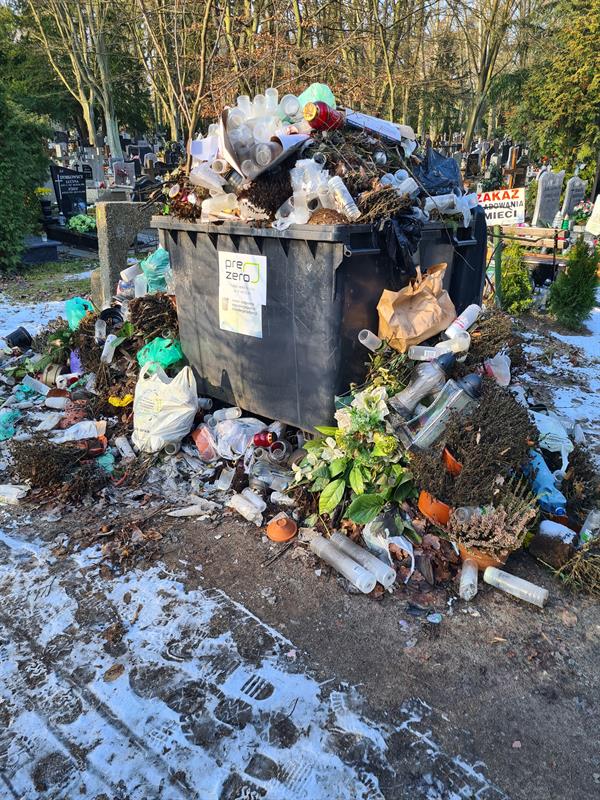 Niejednokrotnie pisaliśmy o problemie przepełnionych koszy na śmieci na Cmentarzu Centralnym w Szczecinie. Jak alarmuje nasza Czytelniczka, niestety niewiele się poprawiło.