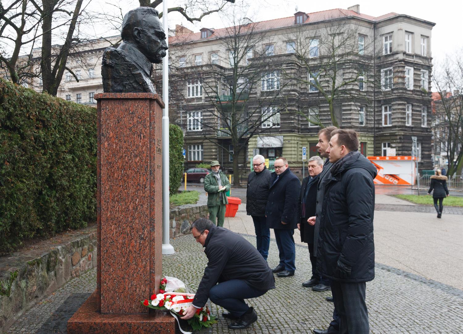 We wtorek (5 grudnia) przypadła 150. rocznica urodzin wybitnego Polaka – marszałka Józefa Piłsudskiego. Z tej okazji radni miejscy Prawa i Sprawiedliwości złożyli kwiaty pod popiersiem marszałka na szczecińskim placu Szarych Szeregów.