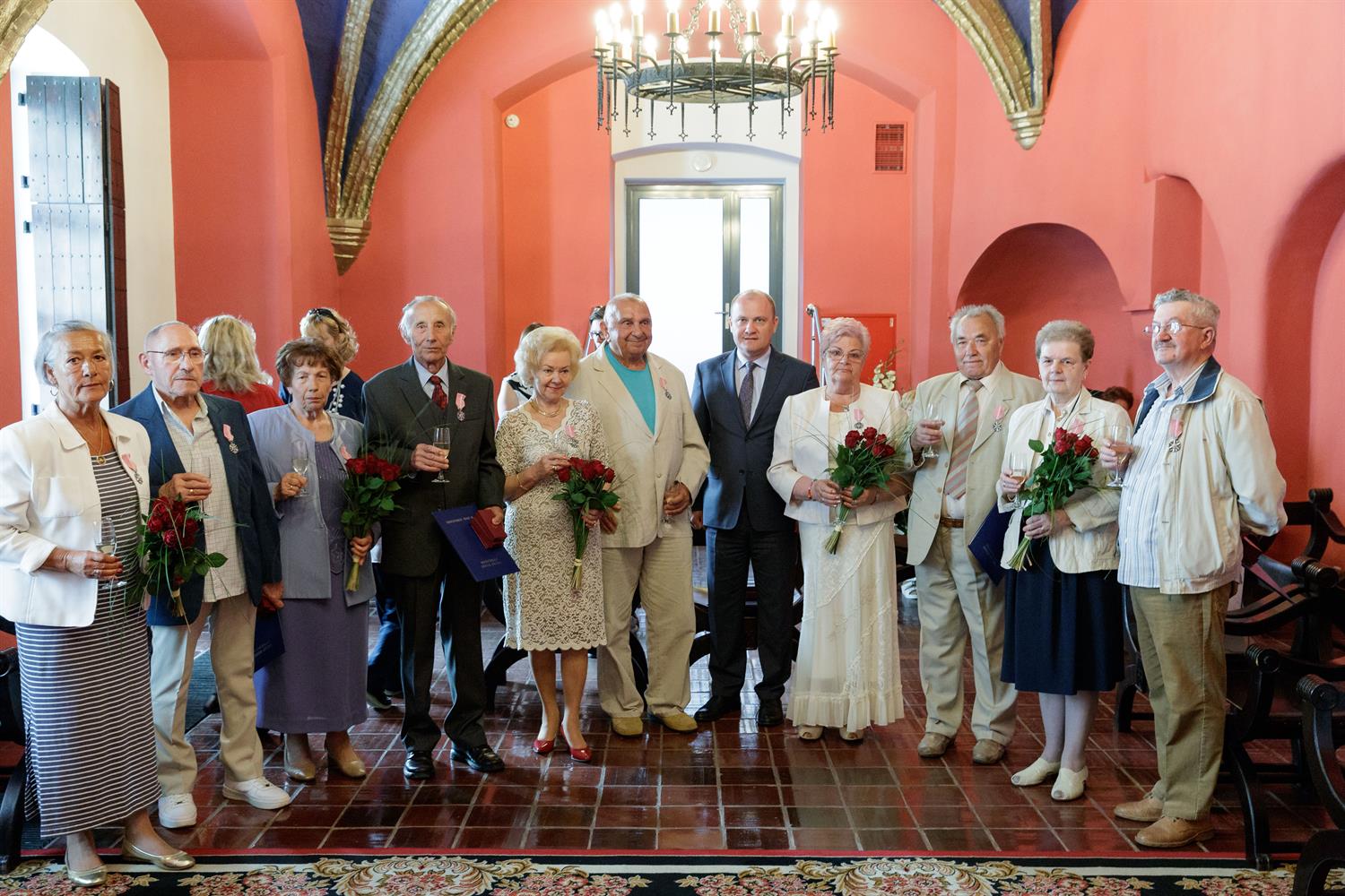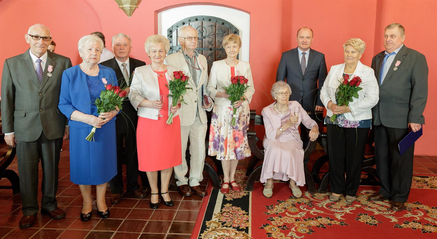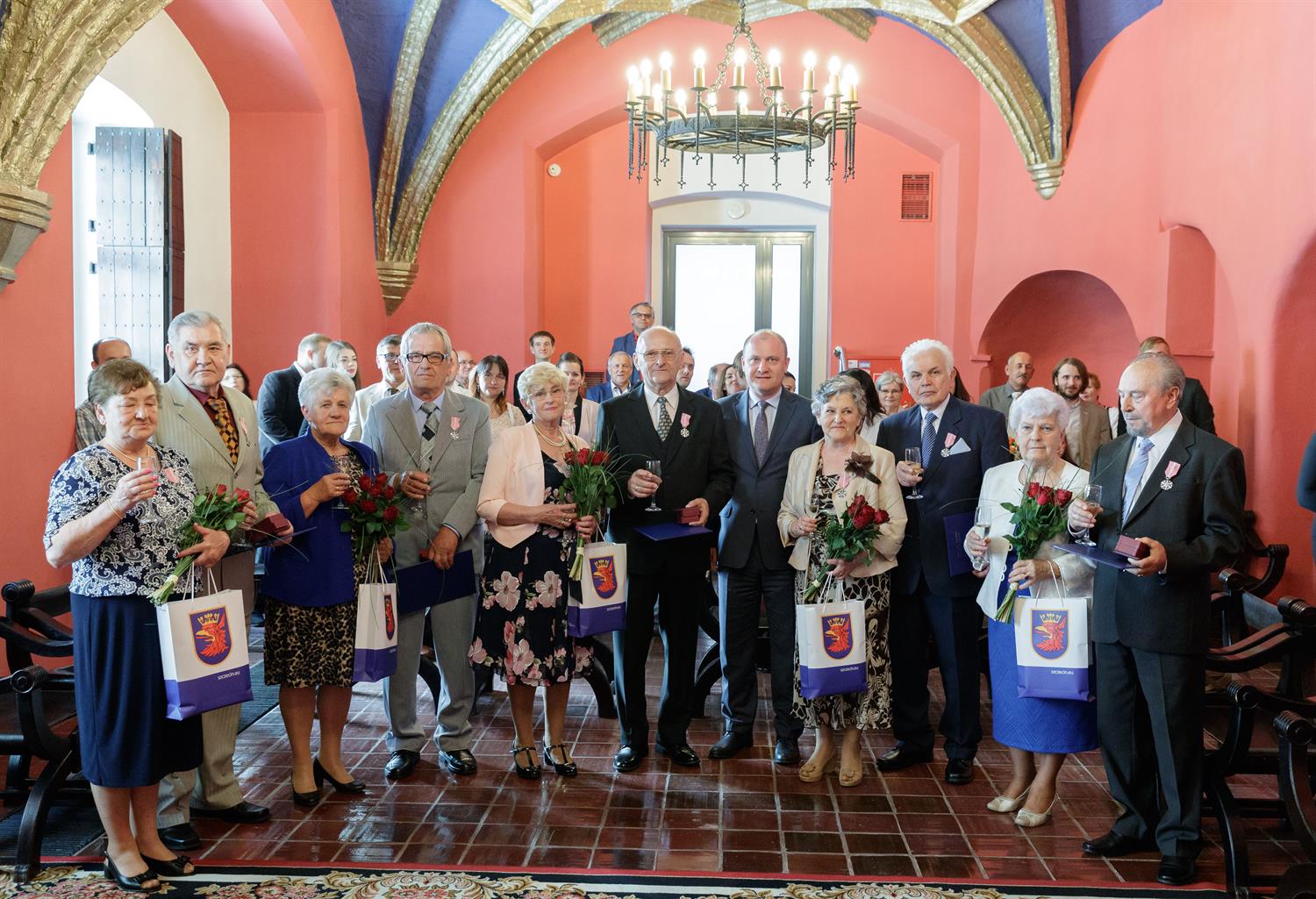 W Sali Ślubów Zamku Książąt Pomorskich w Szczecinie spotkało się w środę piętnaście wyjątkowych par, które przeżyły w małżeństwie 50 lat i więcej. Na przygotowanej dla nich uroczystości jubilaci odebrali z rąk prezydenta miasta Piotra Krzystka Medale za Długoletnie Pożycie Małżeńskie, nadane przez prezydenta RP Andrzeja Dudę.