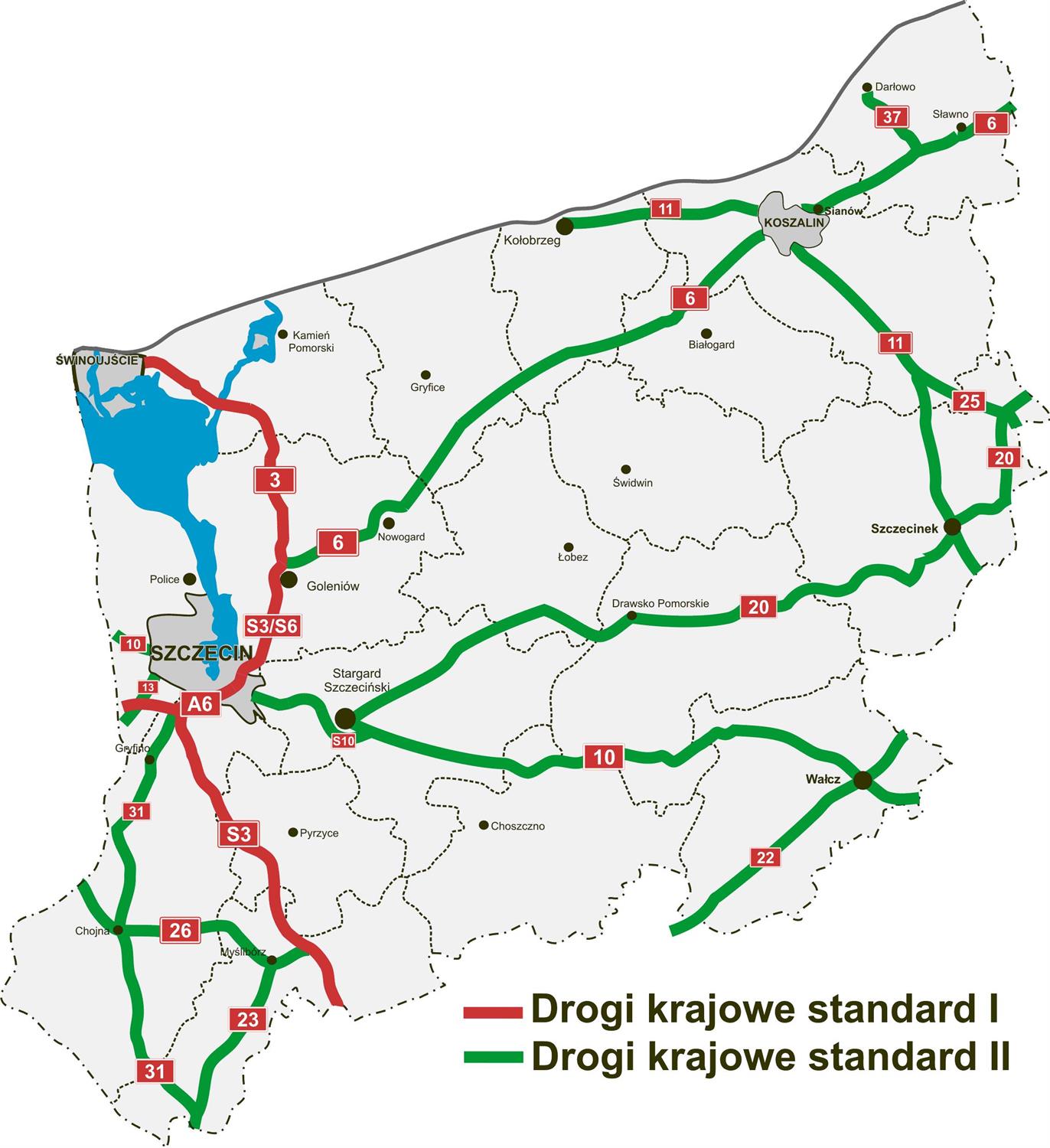 Generalna Dyrekcja Dróg Krajowych i Autostrad odpowiada wyłącznie za stan dróg krajowych poza miastami na prawach powiatu (Szczecin, Koszalin i Świnoujście), oraz dróg ekspresowych i autostrad. W zależności od znaczenia dróg stosowane są standardy zimowego utrzymania, które określają jak powinna być utrzymywana droga. Na drogach krajowych w naszym regionie występują 2 najwyższe standardy: