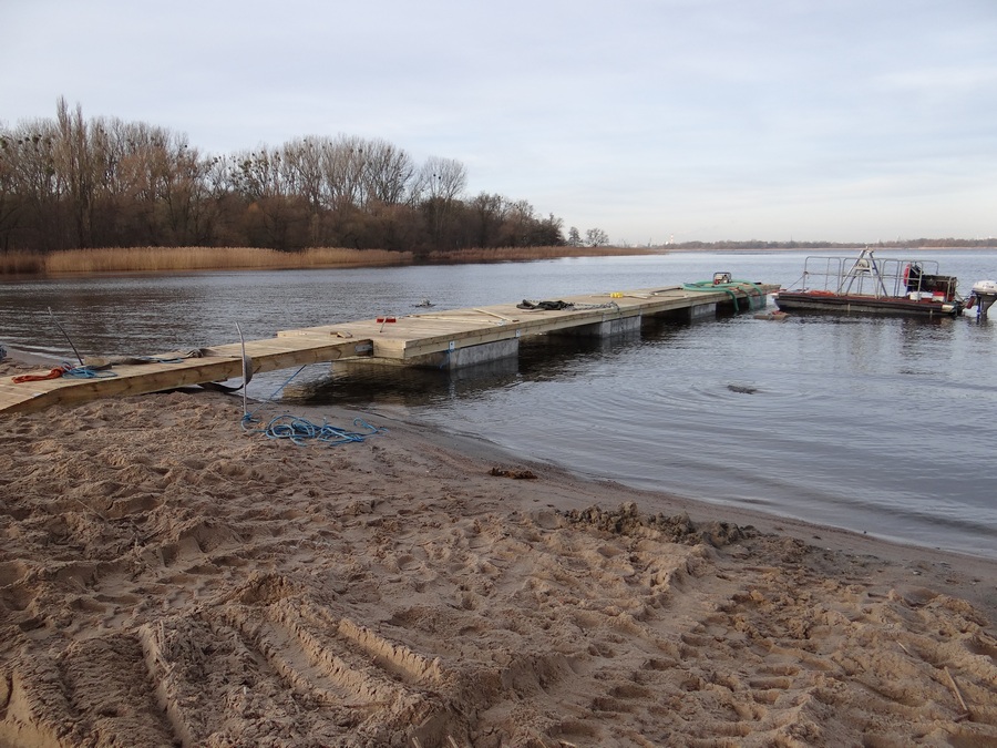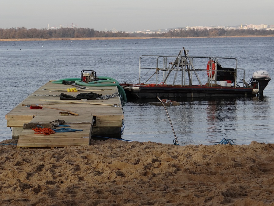 Po latach wreszcie jednak coś się zmieniło w tutejszym krajobrazie. Po starej konstrukcji nie ma już śladu. W jej miejscu zmontowany został właśnie nowy pływający pomost długości 25 metrów.