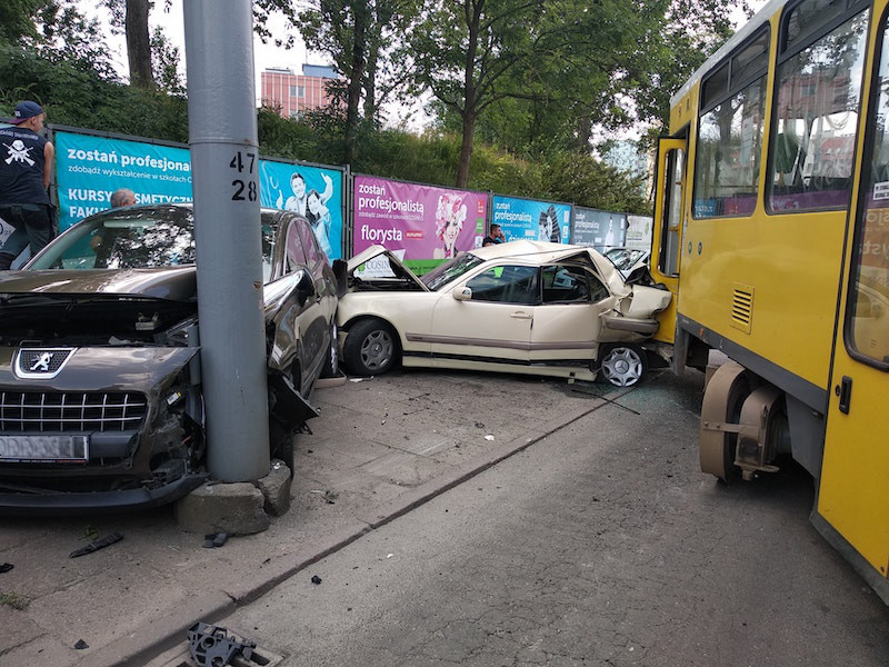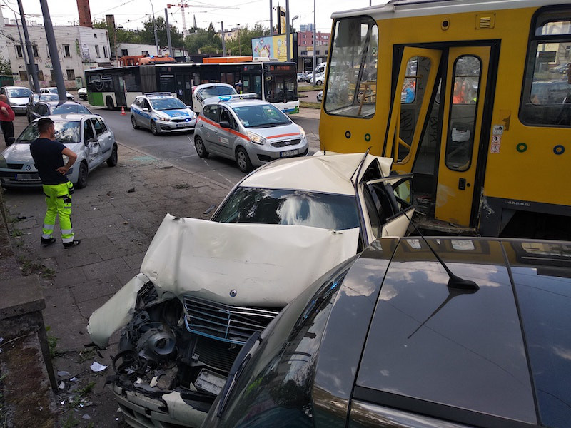 Na Firlika wykoleił się tramwaj i uderzył w samochody