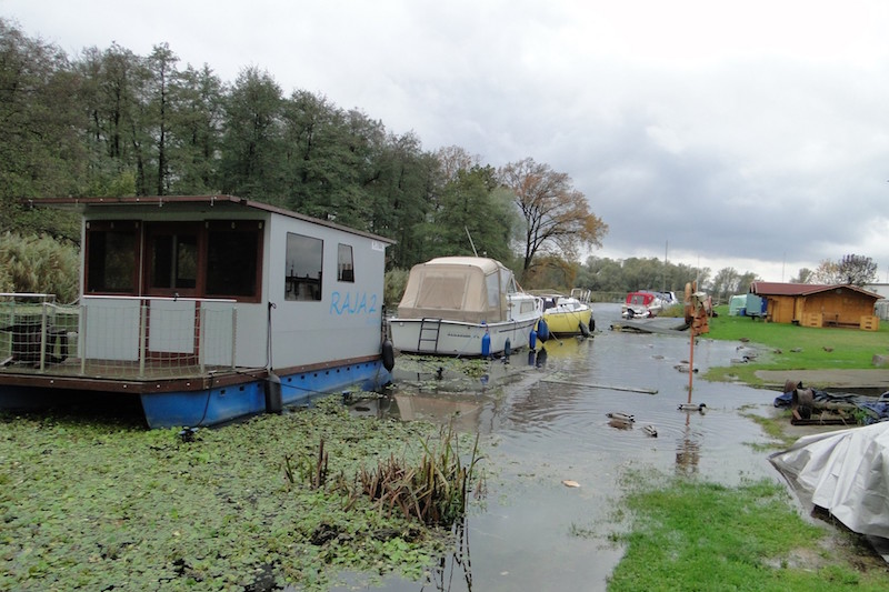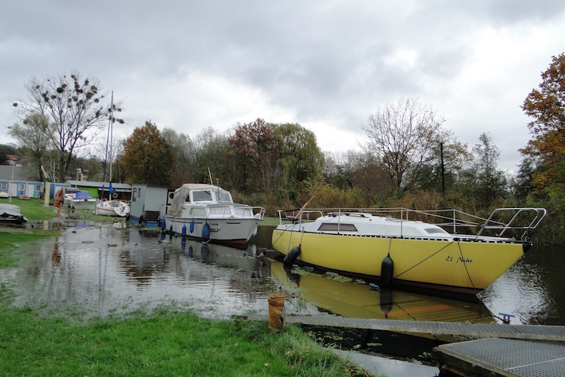 Wczoraj (piątek, 5 listopada) w godzinach przedpołudniowych na gryfińskiej przystani żeglarskiej zastaliśmy Lesława Dumę, Zenona Korzeba i Romana Krzaka, którzy przyszli obejrzeć teren zaniepokojeni, czy wiejący w nocy silny wiatr nie wyrządził szkód. Niestety, stało się – woda wylała z kanału, podtopiła sporą część przystani.