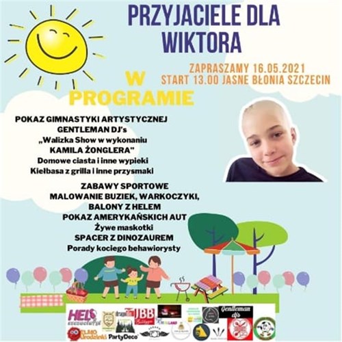 W niedzielę 16 maja od godz. 13 do wieczora na Jasnych Błoniach w Szczecinie potrwa piknik charytatywny "Przyjaciele dla Wiktora". Celem plenerowego i pełnego atrakcji wydarzenia jest pomoc w zbiórce pieniędzy na leczenie w USA 12-letniego Wiktora Lewickiego, cierpiącego na guza mózgu. Do poniedziałku, 17 maja, trzeba zebrać 9,5 mln zł. Brakuje jeszcze ponad 2 mln zł.