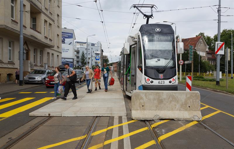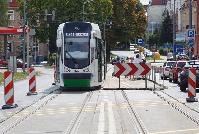 Od teraz w kierunku Krzekowa można dojechać tramwajem linii 5 z tymczasowego przystanku w ul. Mickiewicza, ale kursuje on tylko do przystanku Żołnierska.