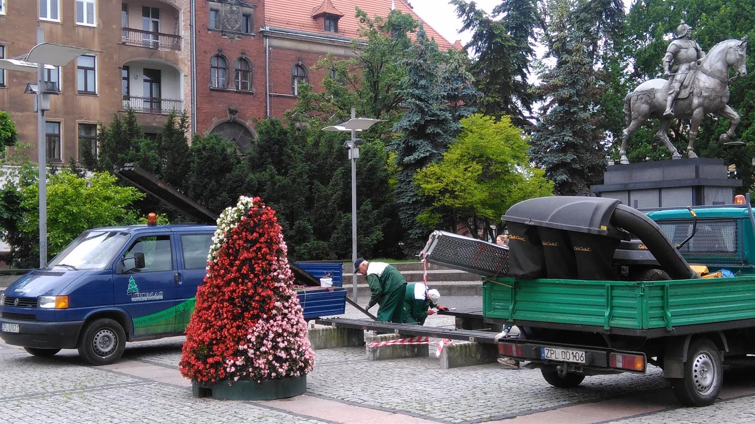 Szczecin się zmienia na lepsze? Na pl. Lotników - właśnie teraz - na pewno. Już stoją cztery efektowne kwietniki, zwane lodami, z begoniami. Są wymieniane zniszczone drewniane elementy siedzisk na nowe. Będzie gdzie przysiąść i odpocząć: nie tylko w czas nadchodzących upałów.