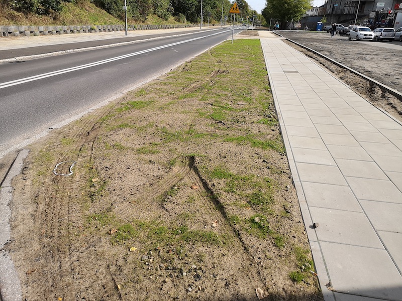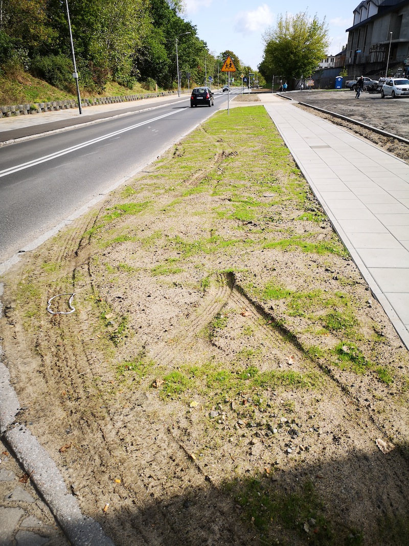 W środę (9 września) zastanawiałem się jak będą wyglądały nowe trawniki jakie powstały kilka dni temu wzdłuż wyremontowanej ulicy Witkiewicza w Szczecinie. Już po pierwszym dniu jak wygrabiono teren i posiano trawę widać było, że wielu przechodniów skraca sobie drogę przez zagospodarowany teren.