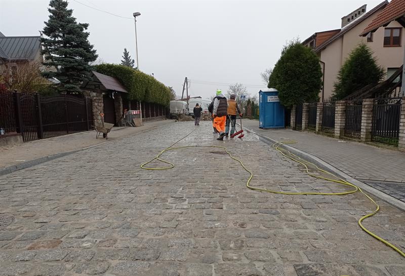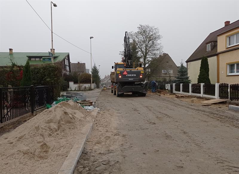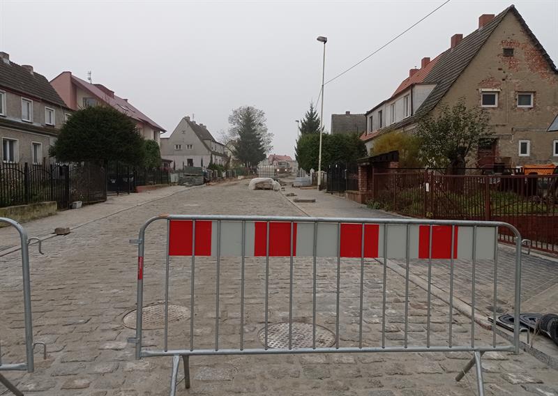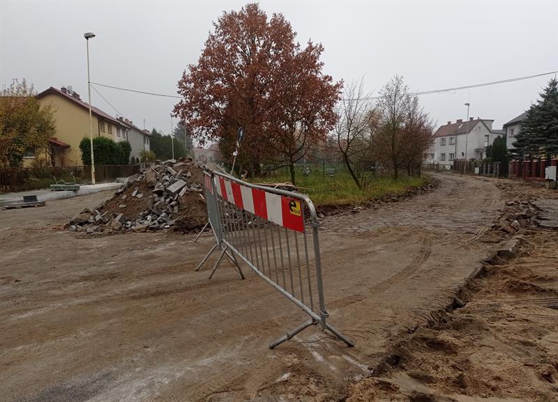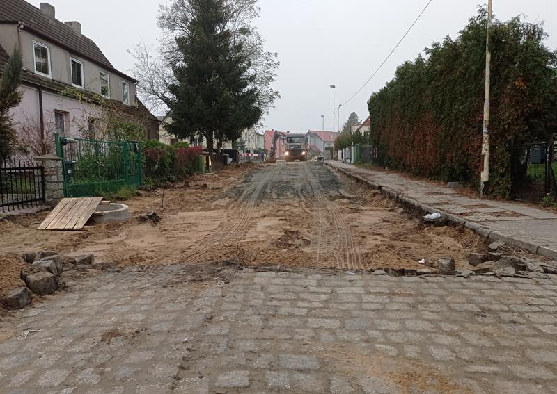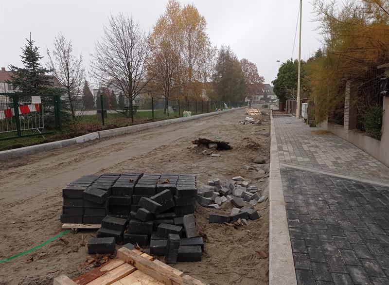 Do tej pory prawie gotowe są jedynie odcinki chodników po obu stronach z podjazdami do posesji i pasa jezdni od skrzyżowania ul. Pokoju do wysokości skrzyżowania z ul. Poprzeczną. Podobnie jest z fragmentami nowych chodników i ppdjazdów na dalszych odcinkach ulicy. W wielu jednak miejscach pobocza są wciąż rozkopane lub dopiero przygotowywne do układania nowej nawierzchni. Podobnie zresztą jak sam pas jezdni - ten urządzany jest z kostki kamiennej pozyskiwanej z odzysku ze starej nawierzchni ulicy na tym odcinku.