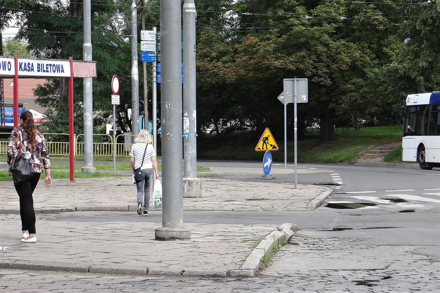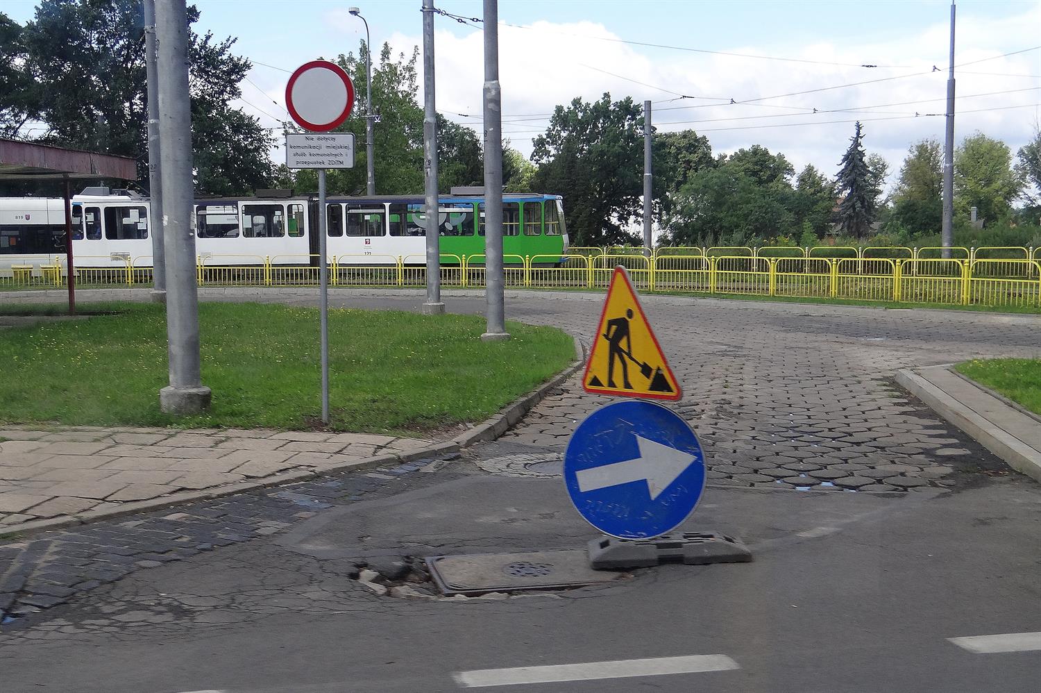 A dziura, o której mowa, od tygodni zastawiona jest tradycyjnie pachołem ze znakiem centralnie pośrodku zdewastowanego pasa dojazdu na pętli „Krzekowo”. Do pachoła – ku uciesze kierowców i przechodniów – przytroczono znak ostrzegawczy o robotach drogowych.