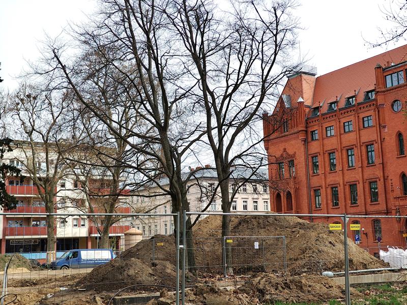 Wbrew teorii, wskazywanej przez magistrat: „podczas realizacji przedsięwzięcia musi być zapewniony nadzór dendrologiczny, dzięki czemu wycinki inwestycyjne są ograniczane do niezbędnego minimum, a drzewa rosnące w bezpośrednim sąsiedztwie lub na terenie placów budowy są maksymalnie zabezpieczone”. Faktycznie, nie wszystkie drzewa na placu przebudowy pl. Batorego – jak widać – są właściwie zabezpieczone.