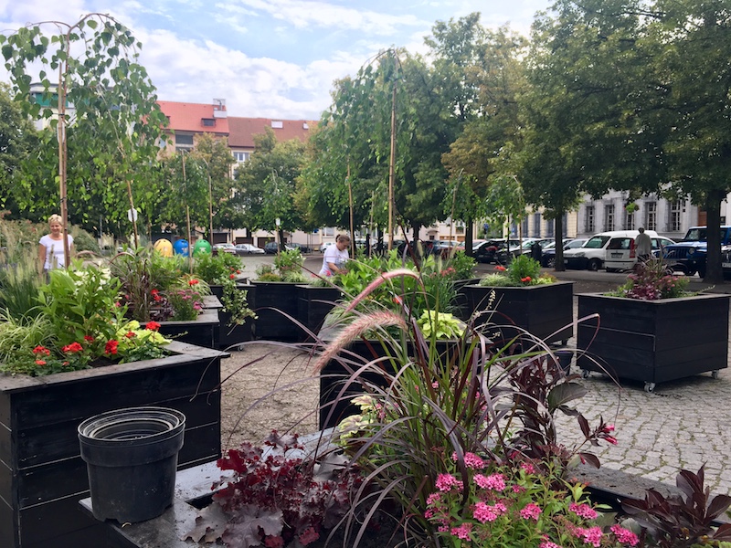 Plac bez samochodów jest pusty, ale dzięki temu także bardziej otwarty na zmiany. Rozpoczęła się realizacja pierwszej - najczęściej postulowanej, czyli oswojenie przestrzeni pl. Orła Białego nowymi roślinami. Ozdobnymi trawami, tawułkami, irgani, białymi krzewuszkami, jeżówkami, bluszczem, czerwonymi pelargoniami, pachnącą lawendą i płaczącymi brzozami Youngii.