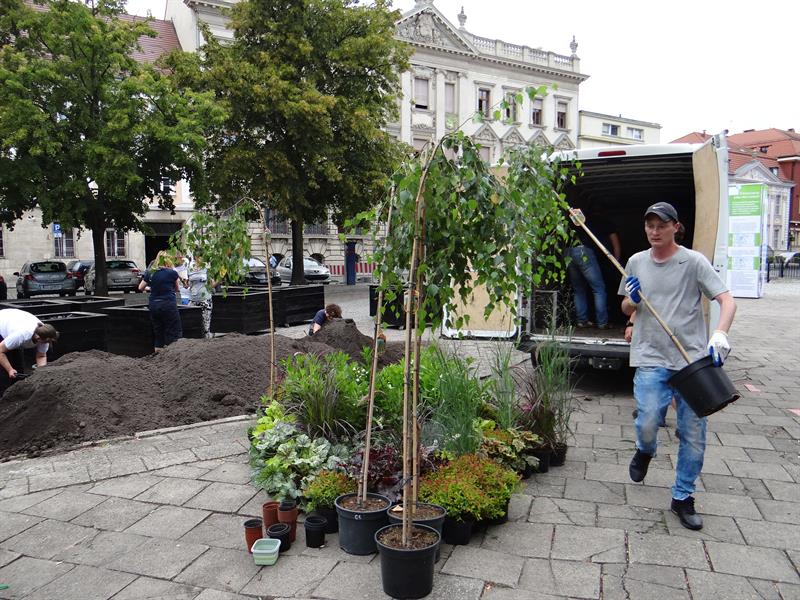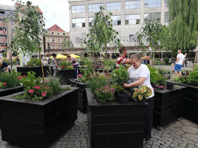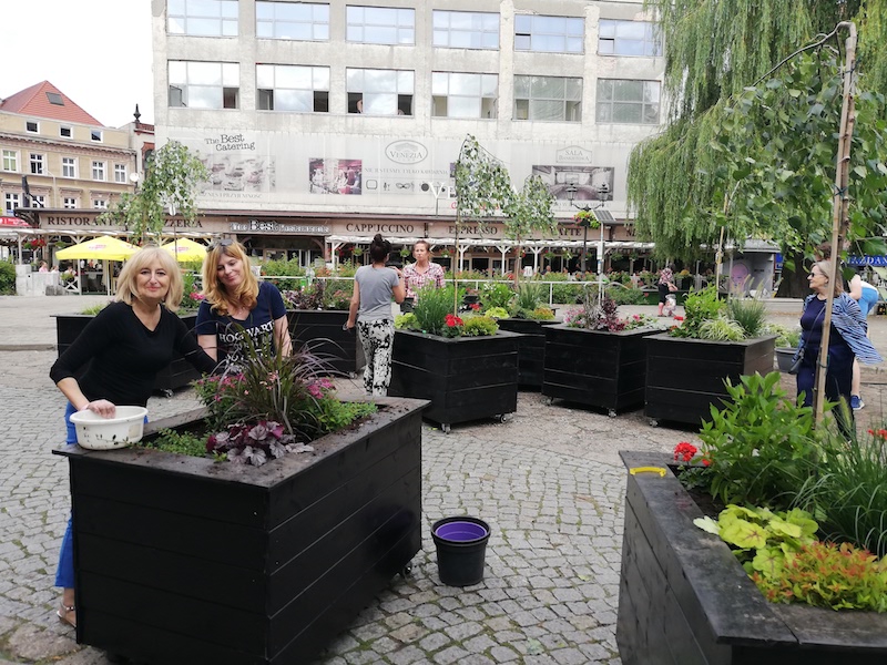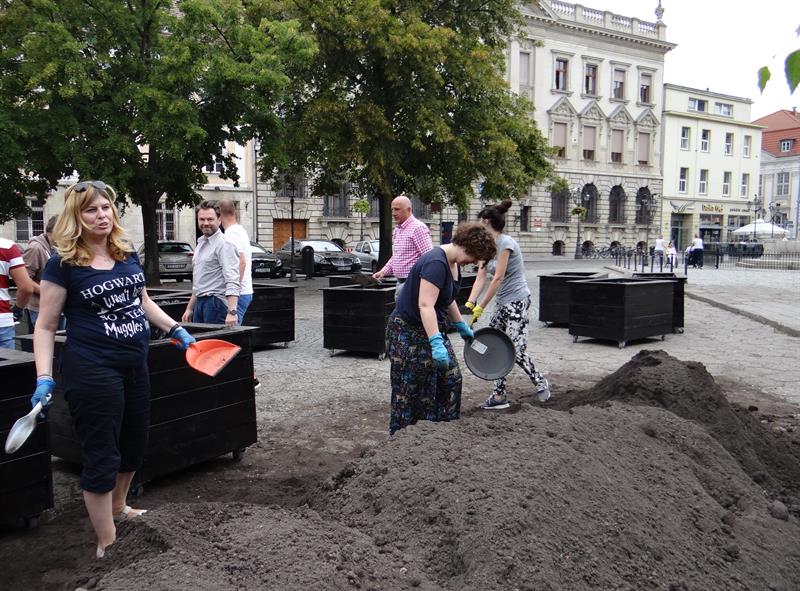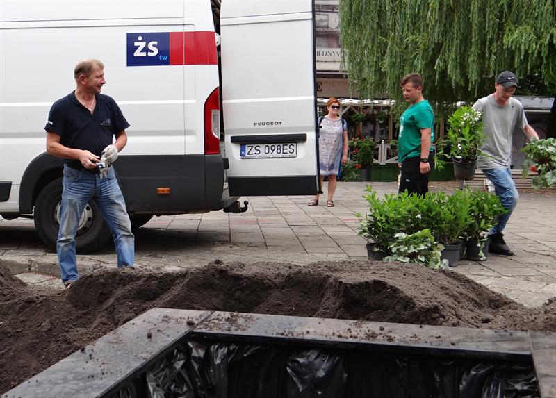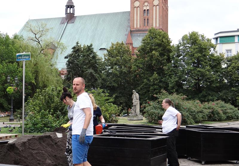 Trafiły do 20 mobilnych skrzyń, które stanęły w miejscu barierek dotychczas zagradzających wjazd na plac. Oczywiście, nie same. Tylko dzięki sporej dawce entuzjazmu i wytrwałej pracy społeczników, m.in. z Kooperatywy Łaźnia, Rowerowego Szczecina, radnych i mieszkańców Starego Miasta, Akademii Sztuki. Wśród wolontariuszy nie zabrakło przedstawicieli lokalnego biznesu, głównie punktów handlowych (m.in. „Pod Gwiazdami") i gastronomii („Dzika Gęś", „Bardzo Dobrze"), a też „dyrygentów" prototypowania zmian dla docelowej przemiany pl. Orła Białego: urbanisty Pawła Jaworskiego oraz wiceprezydenta Daniela Wacinkiewicza.