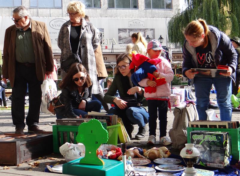 Kto miał szczęście, ten cenę srebrnych kolczyków zbił do 5 zł, a kryształowy przycisk do papieru porwał do domu za jedyną „dyszkę". Ale można było przebierać i wybierać wśród rasowych resoraków, kultowych winyli i oryginalnych kaseciaków, pośród staroci z mosiądzu i porcelany, babcinych torebek, vintage kapeluszy oraz szmatek na każdą porę roku i okazję. Nie brakowało książek, obrazów, plakatów, drewnianych klocków, parcianych lalek, puchatych miśków, a nawet butów do konnej jazdy i miedzianej sziszy.