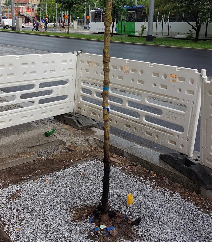 Nie zakończyły się jeszcze prace związane z nasadzeniami w centrum Szczecina, a już jedno z drzew zostało zniszczone. I to nie przypadek. Jarząb szwedzki w okolicy pl. Rodła został podpalony.
