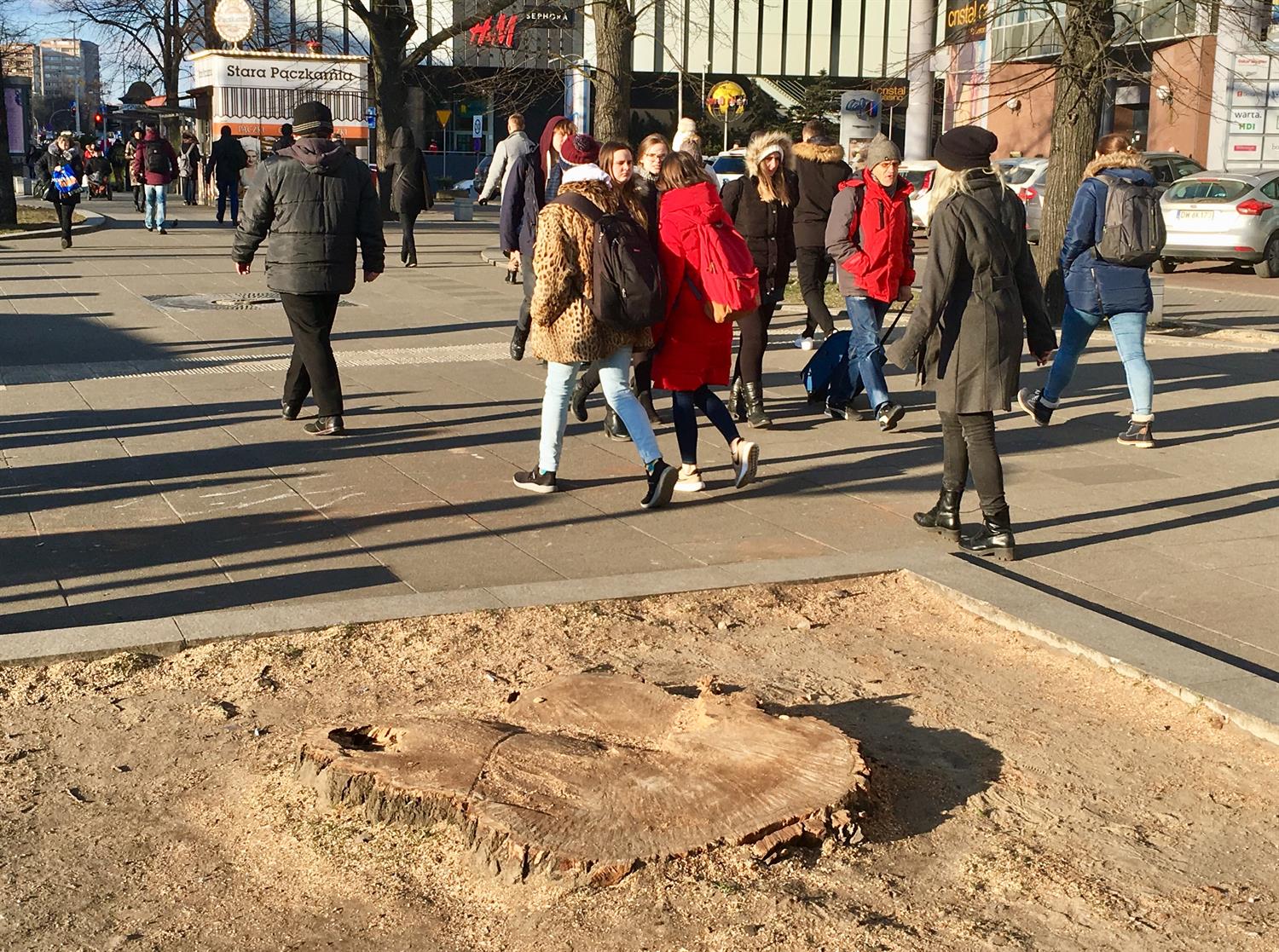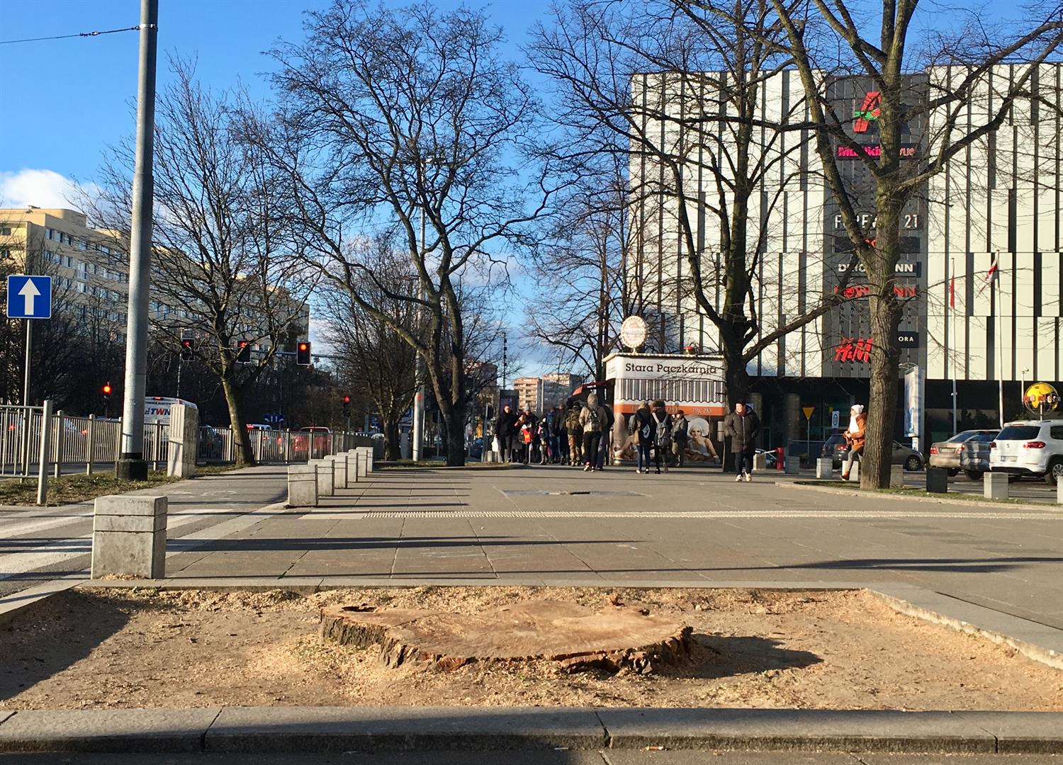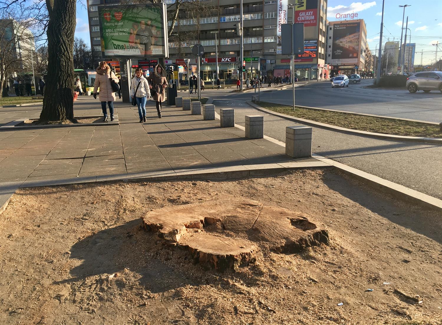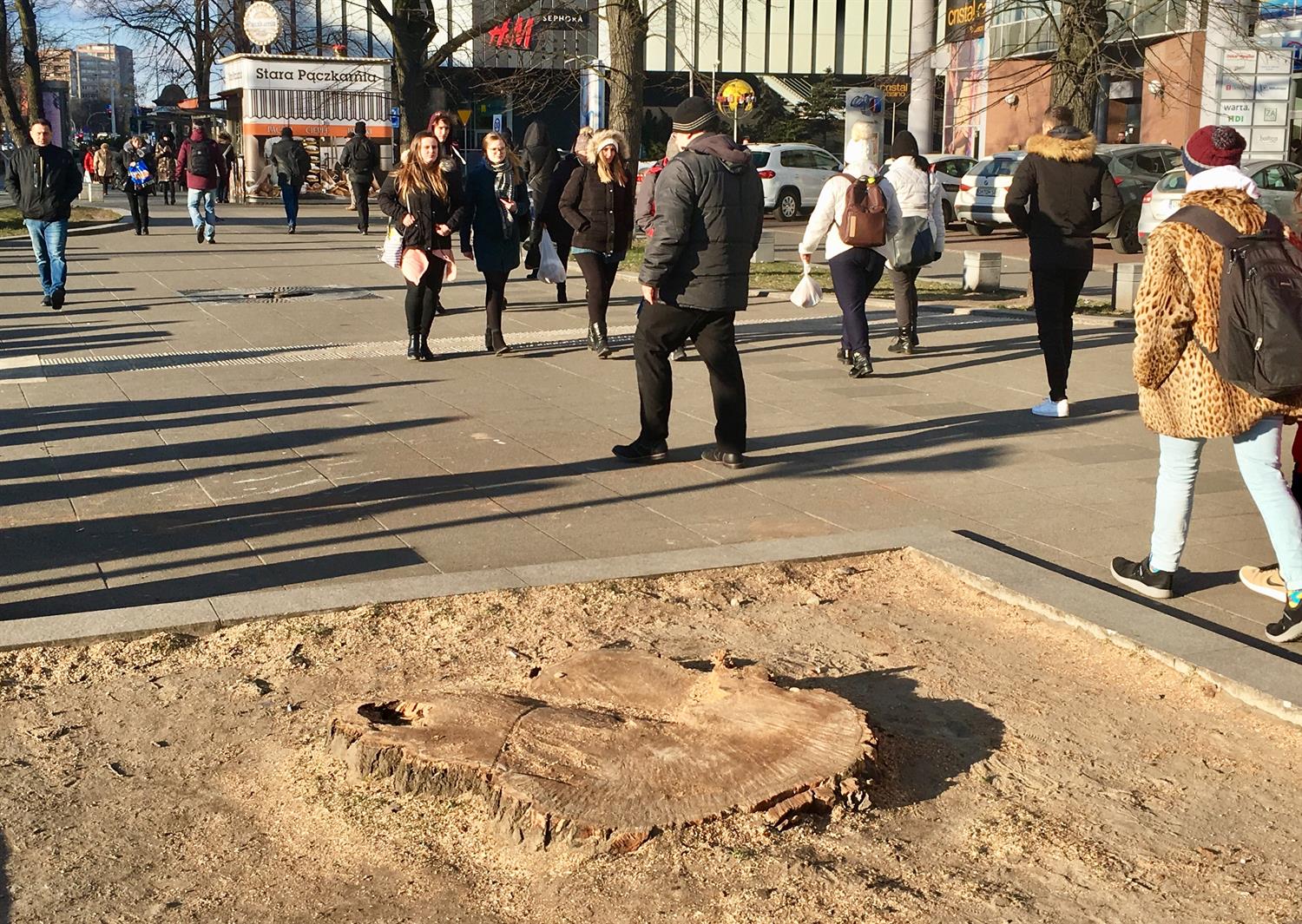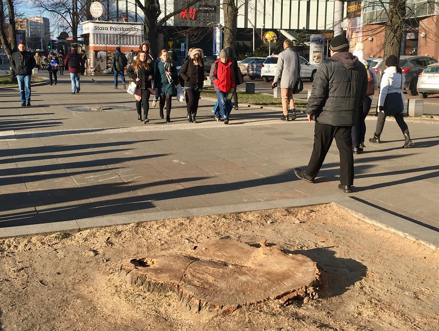 oczywiście drzewo dopiero wycięte po niedawnej przebudowie tego odcinka chodnika, bo to tak nagle zachorowało? nie można było szybciej tego zrobić i wykonać w tym miejscu chodnik? żenada zuk i zditm