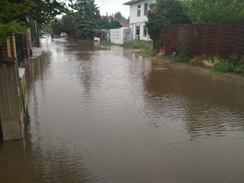 Ul. Różany Zakątek- zalana ulica, zorganizowano worki