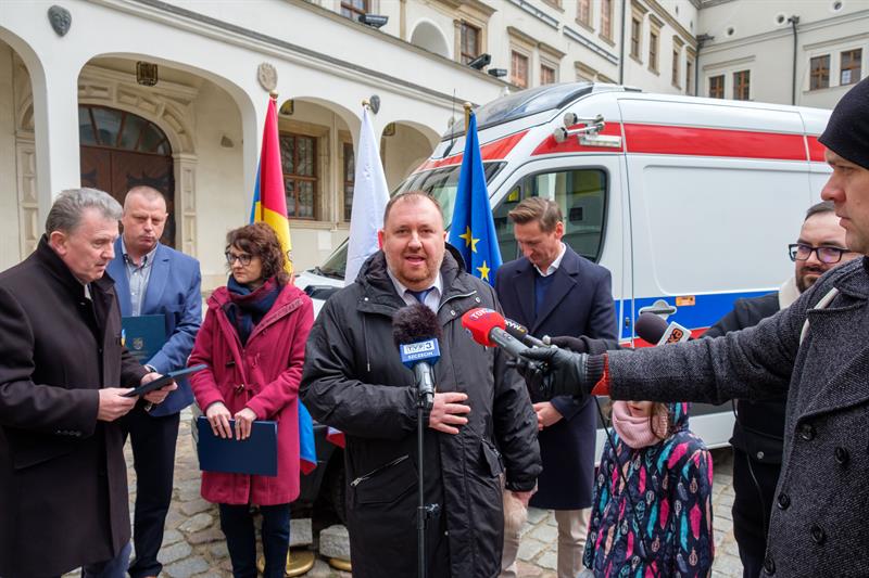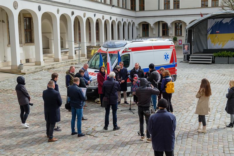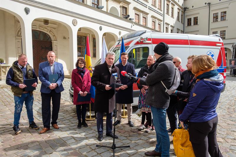 Przekazanie karetki odbyło się w poniedziałek (11 kwietnia) w Szczecinie. W spotkaniu uczestniczyli konsul honorowy Republiki Mołdawii Aleksander Łaskawer, konsul honorowy Ukrainy w Szczecinie Henryk Kołodziej, marszałek województwa Olgierd Geblewicz oraz dyrektor pogotowia Roman Pałka. Obecni byli także kierowcy, którzy w ub. tygodniu dostarczyli dary medyczne do ukraińskich Czerniowców.