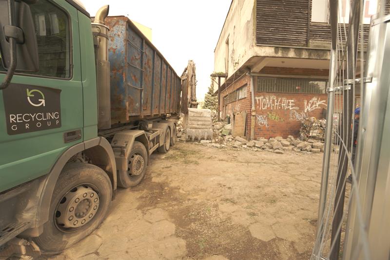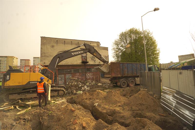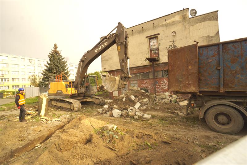 Na wysokości domu przy ul. Ruskiej 22-23a oraz vis-à-vis budynku, gdzie ma swoją siedzibę Spółdzielnia Mieszkaniowa „Kolejarz” trwają prace wyburzeniowe. Na placu budowy widać ciężki sprzęt i ekipy budowlańców z firmy „Calbud” będącej generalnym wykonawcą robót. Prowadzone są również prace porządkowe.