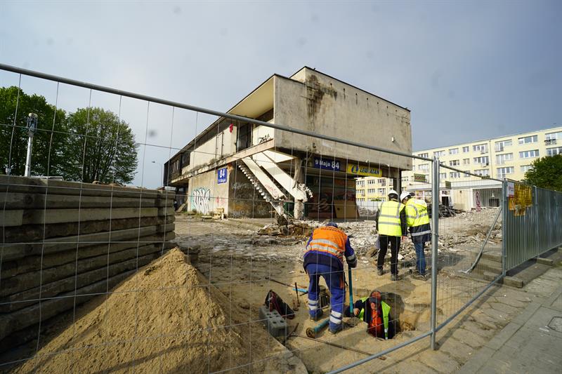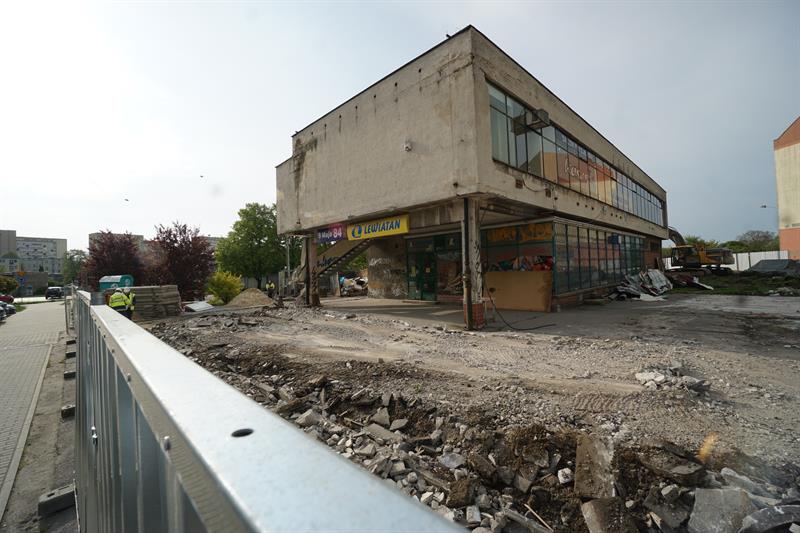 Zmiany na szczecińskich Pomorzanach. Trwa rozbiórka pawilonu handlowego u zbiegu ulic 9 Maja i Ruskiej, w miejsce którego ma powstać budynek mieszkalny.