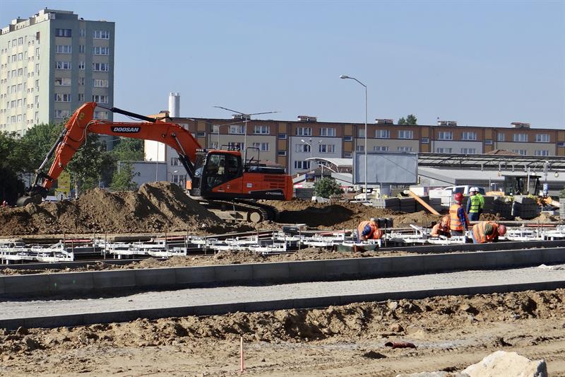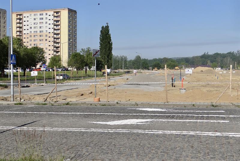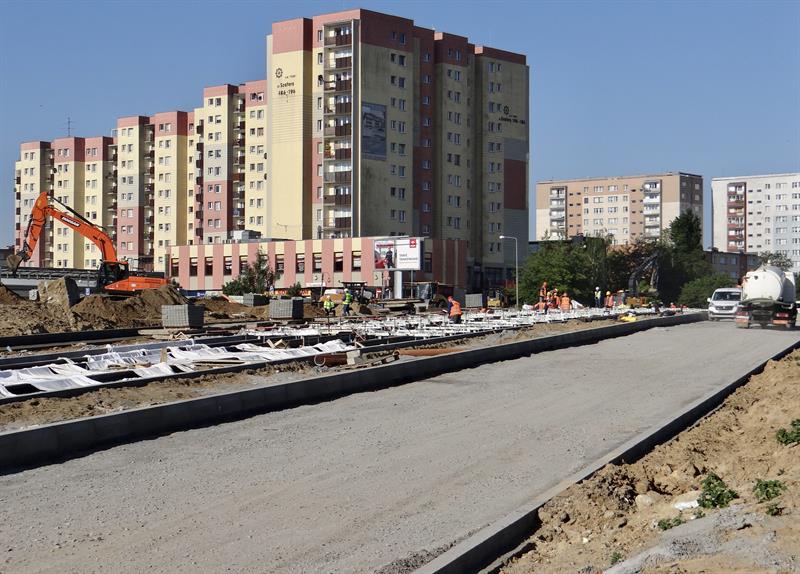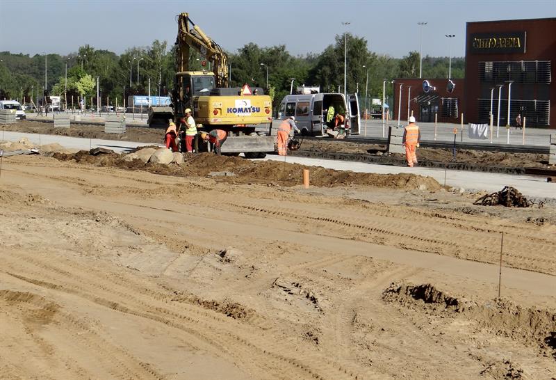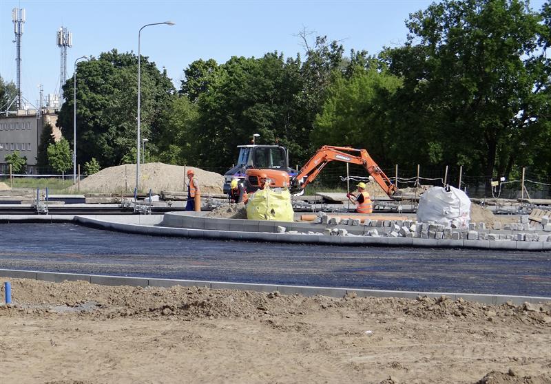 Natomiast w wydzielonym obszarze placu przebudowy, który obejmuje teren dawnego garażowiska za ul. Franciszka Jarzyńskiego, a przyległy bezpośrednio do jednostki wojskowej i strzelnicy w stronę Krzekowa, kontynuowane są prace ziemne i przy instalacjach pod przyszłą pętlę tramwajowo-autobusową. Częściowo wykonane zostały tam też elementy podbudowy dalszego odcinka nowej drogi w kierunku skrzyżowań z ulicami Eugeniusza Romera oraz Szeroką i Modrą.