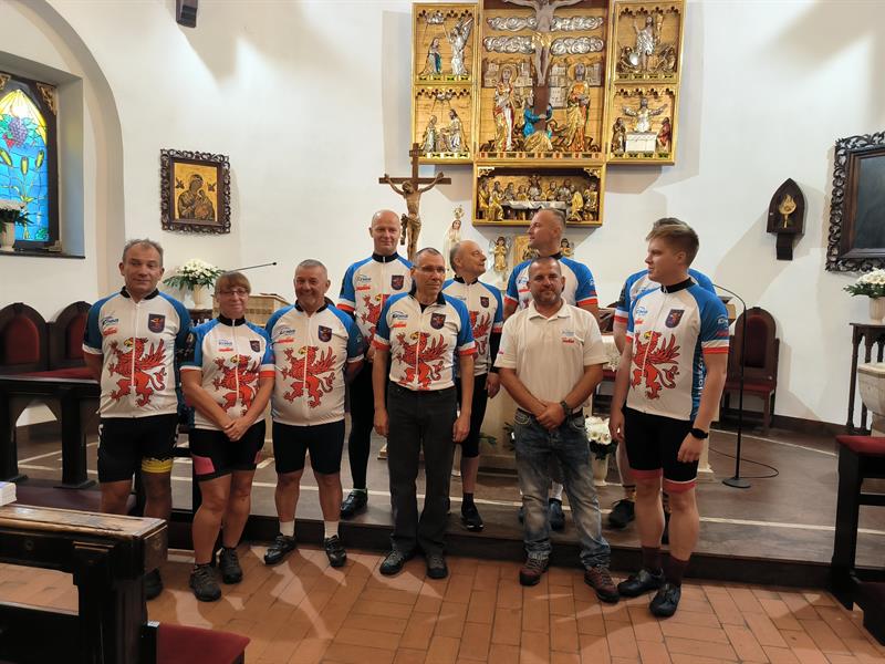 To część 38. Pielgrzymki Energetyków, Elektryków i Elektroników. Generalnie autokarowa, ale część uczestników odbywa ją właśnie na rowerach. Jej termin nie jest przypadkowy. 14 sierpnia jest święto energetyków, obchodzone na pamiątkę śmierci św. Maksymiliana Kolbego - patrona tej grupy zawodowej. Nieprzypadkowy był więc także punkt startu grupy rowerowej - to Kościół Rzymskokatolicki pw. św. Maksymiliana Marii Kolbego przy ul. Włościańskiej w Szczecinie. Wyjazd poprzedziła msza święta, po niej pielgrzymi posilili się ciastem i ruszyli w drogę.