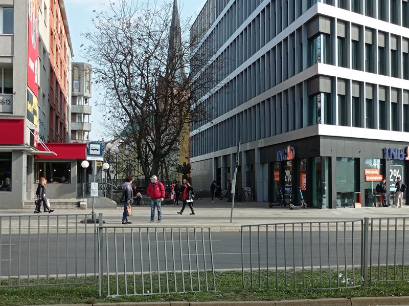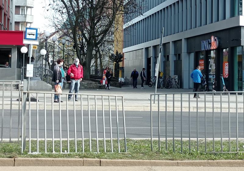 To miejsce pomiędzy przystankami Bramy Portowej. W ciągu al. Niepodległości. Oddzielają je trzy pasy ruchu i przejście dla pieszych. Dlatego niektórzy - którym za długo czekać na zmianę świateł i za daleko do pasów - wybierają skróconą trasę, przez wyrwę w przełamanym ciągu barierek. Nie dość, że to dla pieszych niebezpieczna trasa przez punkt o ogromnym natężeniu ruchu, to jeszcze przez krokusy, którymi - jak co roku - Szczecin się zmienia na wiosnę.