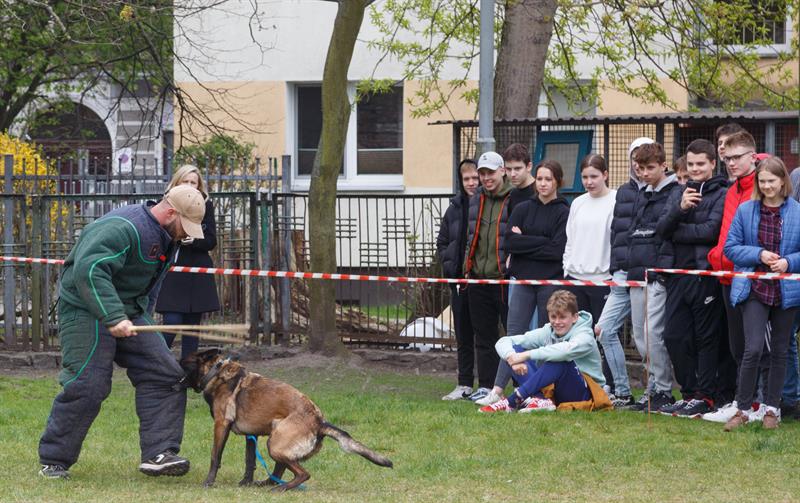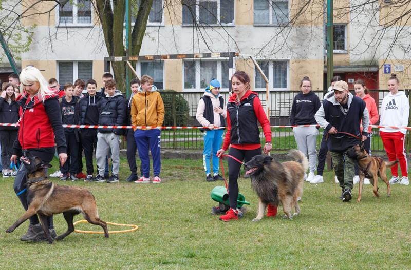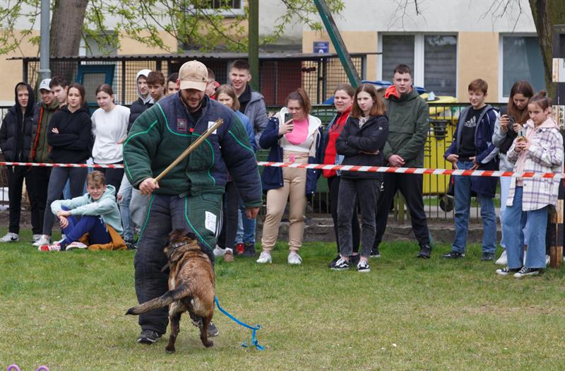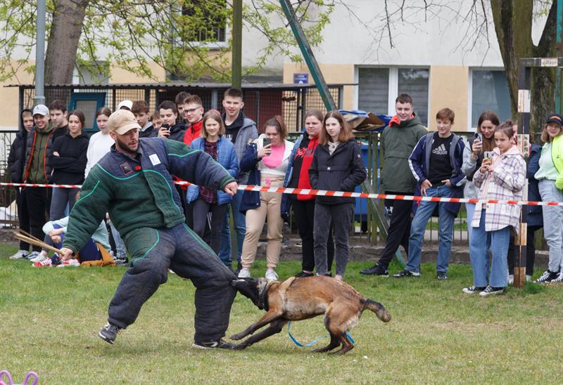 Swoje umiejętności na szkolnym boisku zaprezentowały cztery owczarki: Giga, Hajder, Largo i Cheri z „UniwerPSYtetu" w Szczecinie, prywatnie psy z hodowli Małgorzaty Jędrzejczak.