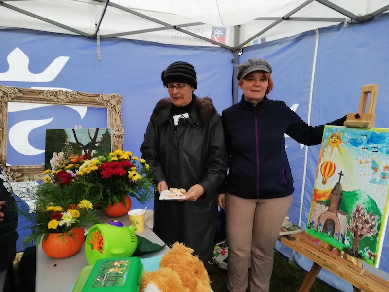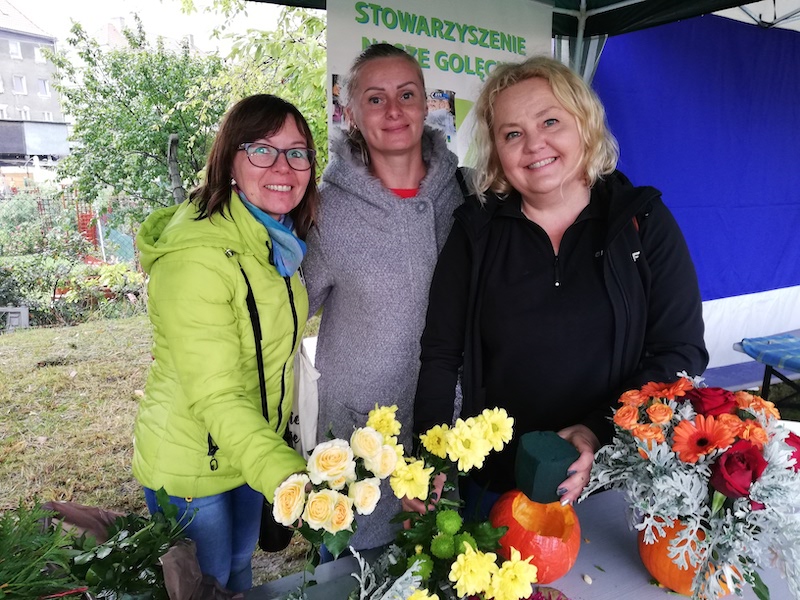 Polana za boiskiem SP nr 9 pełna była atrakcji. Organizatorzy nie dali się zaskoczyć deszczowej pogodzie i przygotowali zadaszenie, gdzie bez przeszkód można było skorzystać z przygotowanych propozycji. Czas umilał Zespół Ludowy Gardnianki, pokazy taneczne, warsztaty ekorecyklingu, była też wystawa broni kolekcjonerskiej. Utalentowane panie ze Stowarzyszenia Nasze Golęcino pokazały jak wykonać jesienne kompozycje kwiatowe z dyni, na chętnych czekały warsztaty malarskie i kuglarskie oraz pokazy teatru ognia. Uczestnicy wydarzenia namalowali też wspólny obraz. Gości częstowano domowym ciastem, grochówką z kuchni wojskowej i bigosem.