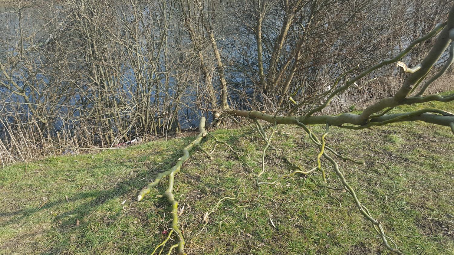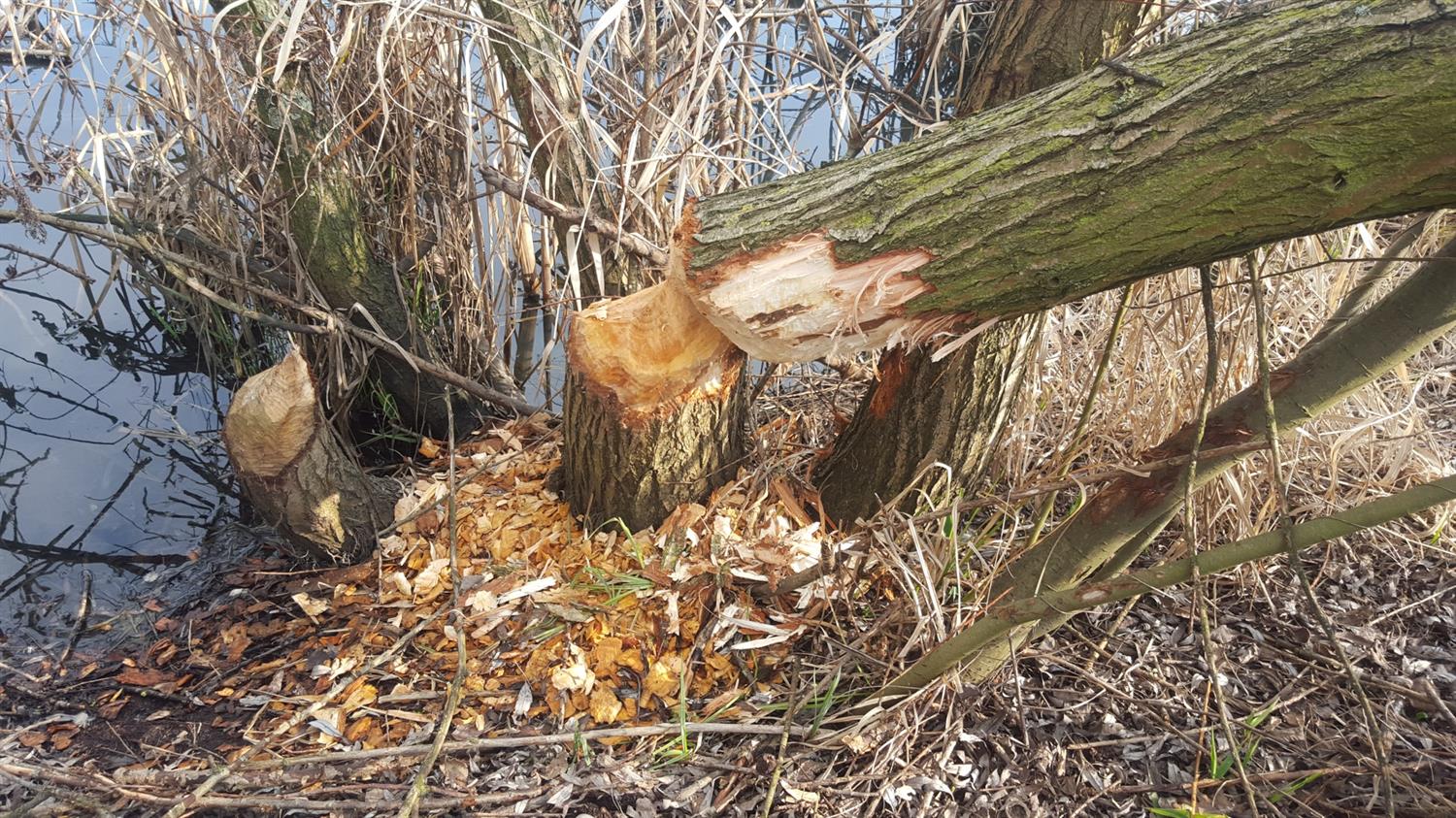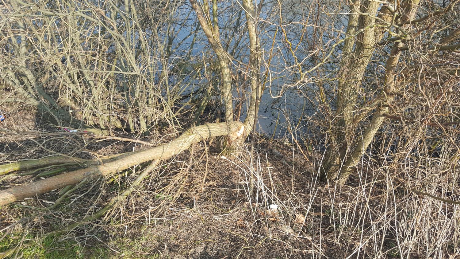 Kto nie wierzył, że nad Słoneczne zaglądają bobry, ten musi uznać fakty. Oto zdjęcia z dzisiejszego poranka: świeżo podciętych drzew nad brzegiem gumienieckiego jeziora.