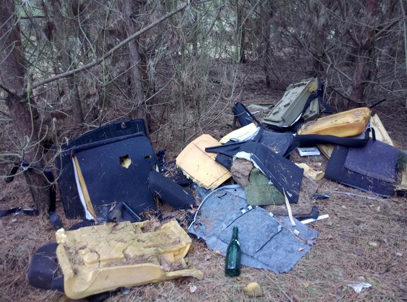 Tym razem również nie chodzi o standardowe śmieci, jakimi spacerowicze bezmyślnie zarzucają miejskie tereny rekreacyjne. Lecz o celowe działanie najprawdopodobniej właściciela lub pracowników jednego z warsztatów samochodowych. O czym świadczy specyficzny branżowy asortyment gabarytowych odpadów, porzuconych przez sprawcę tuż przy polnej drodze, odchodzącej od ul. Olszynki Grochowskiej w stronę pobliskich drzew.