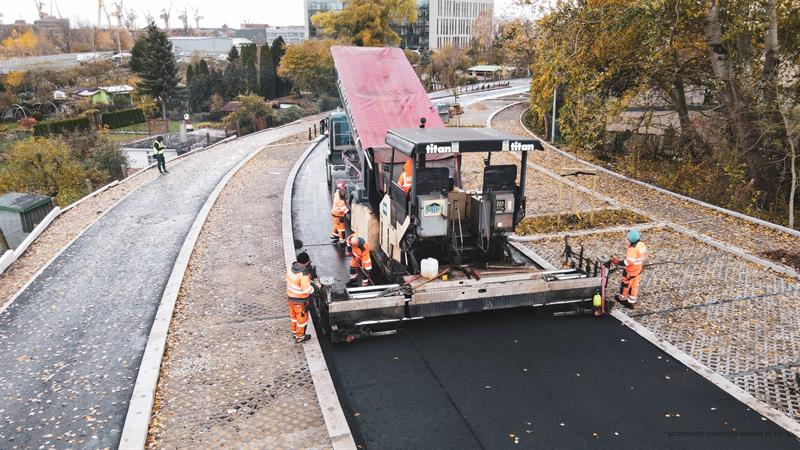 Drogowcy w ostatnim czasie zajmowali się układaniem nawierzchni nowej jezdni oraz ciągu pieszo-rowerowego na ulicy Bożeny. Ten etap robót oznacza, że inwestycja zmierza ku końcowi.