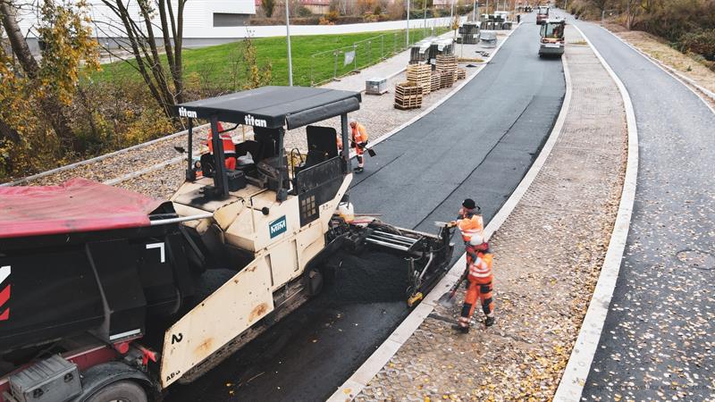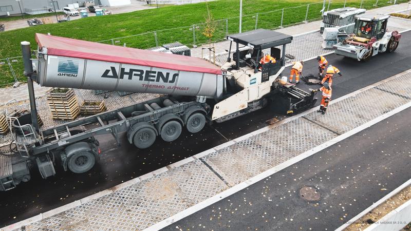 - Mieszanka asfaltowa docierała tirami co chwilę na plac budowy, by następnie przy pomocy rozściełacza zostać równomiernie ułożona na całej szerokości jezdni - mówi P. Zieliński. - Co istotne, przed ułożeniem „ściery” podbudowa wykonana z warstwy wiążącej za każdym razem była oczyszczana z zalęgających na niej liści, śmieci czy innego brudu, które to mogłoby mieć negatywny wpływ na jakość zrealizowanych prac. Cały czas kontrolowane było tempo układania masy, jak również jej temperatura. Po ułożeniu mieszanki, do pracy przystąpiły walce, aby ją zagęścić.